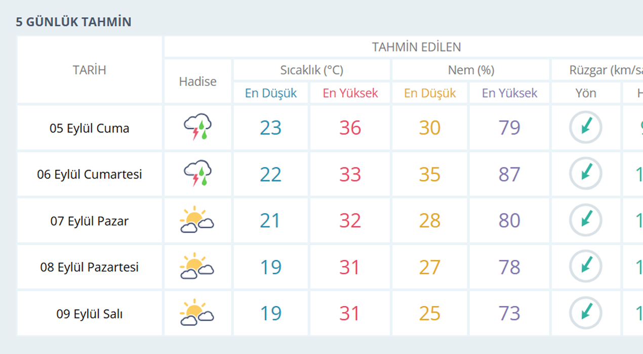 MANİSA İÇİN 5 GÜNLÜK HAVA TAHMİNİ