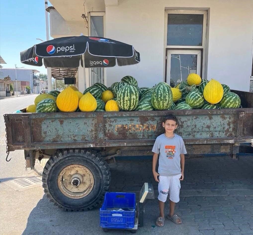 Sarıgöl'ün Bahadırlar Mahallesi'nde yaşayan Keşkekoğlu ailesi, yerli ata tohumundan yetiştirdikleri kavun ve karpuzları traktör kasasına yükleyerek ilçenin farklı mahallelerinde tüketiciyle buluşturuyor. Tüccarların düşük fiyat vermesi ve toplama maliyetlerinin yüksek olması nedeniyle birçok yerde ürünler tarlada kalırken, baba-oğulun uyguladığı yöntem hem üreticinin hem de vatandaşın yüzünü güldürüyor.