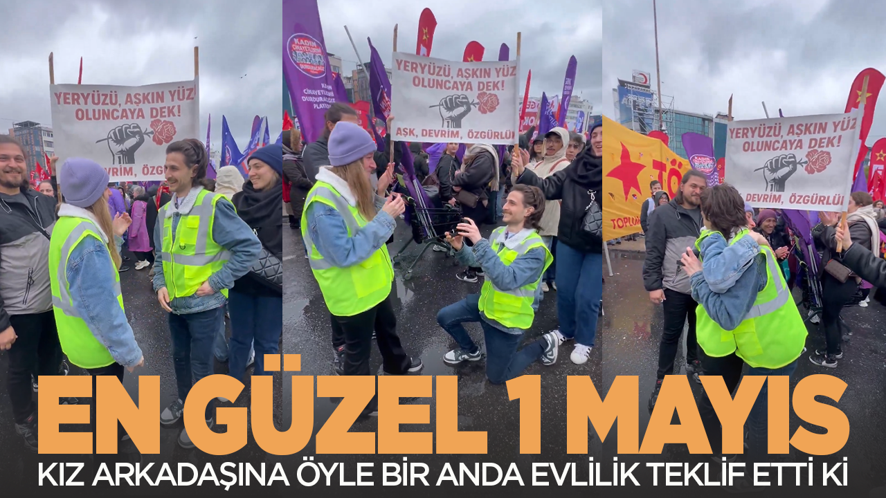 Kadıköy'deki 1 Mayıs kutlamalarına katılan bir genç, kız arkadaşına evlenme teklif etti. O anlar çevredeki vatandaşlar tarafından cep telefonlarınca kaydedildi. Bu güzel ana tanıklık eden vatandaşlar tezahuratlarla genç çifte destek verdi.