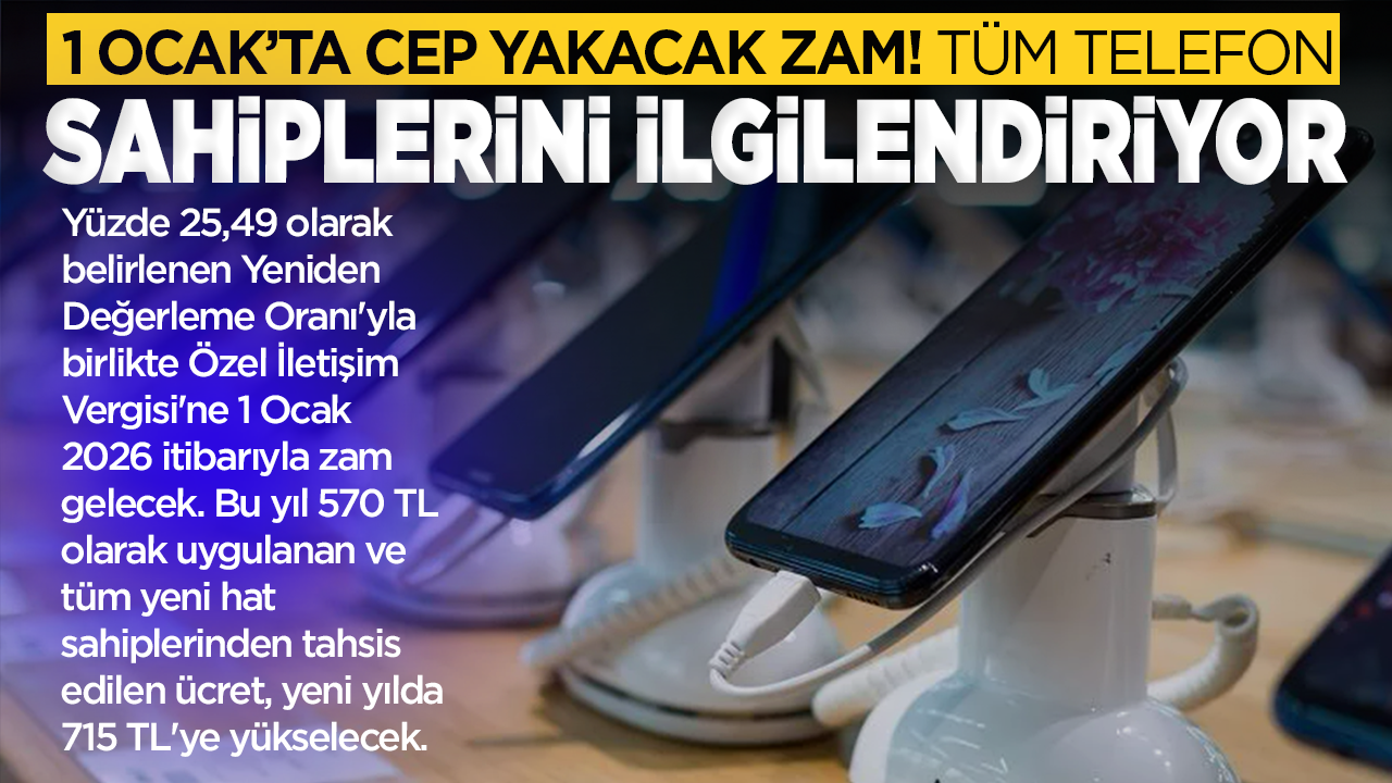 Geçtiğimiz yıl 400 liradan 570 TL'ye yükseltilen Özel İletişim Vergisi (ÖİV), 1 Ocak 2026 itibarıyla yeniden zamlanacak. Vergi kalemindeki artış tutarının ayın son günlerinde yayınlanacak Resmi Gazete'de ilan edilmesi beklenirken, 2025 yılı için belirlenen yüzde 25,49'luk yeniden değerleme oranının uygulanması halinde Özel İletişim Vergisi yeni yılda 715 liraya yükselmiş olacak.