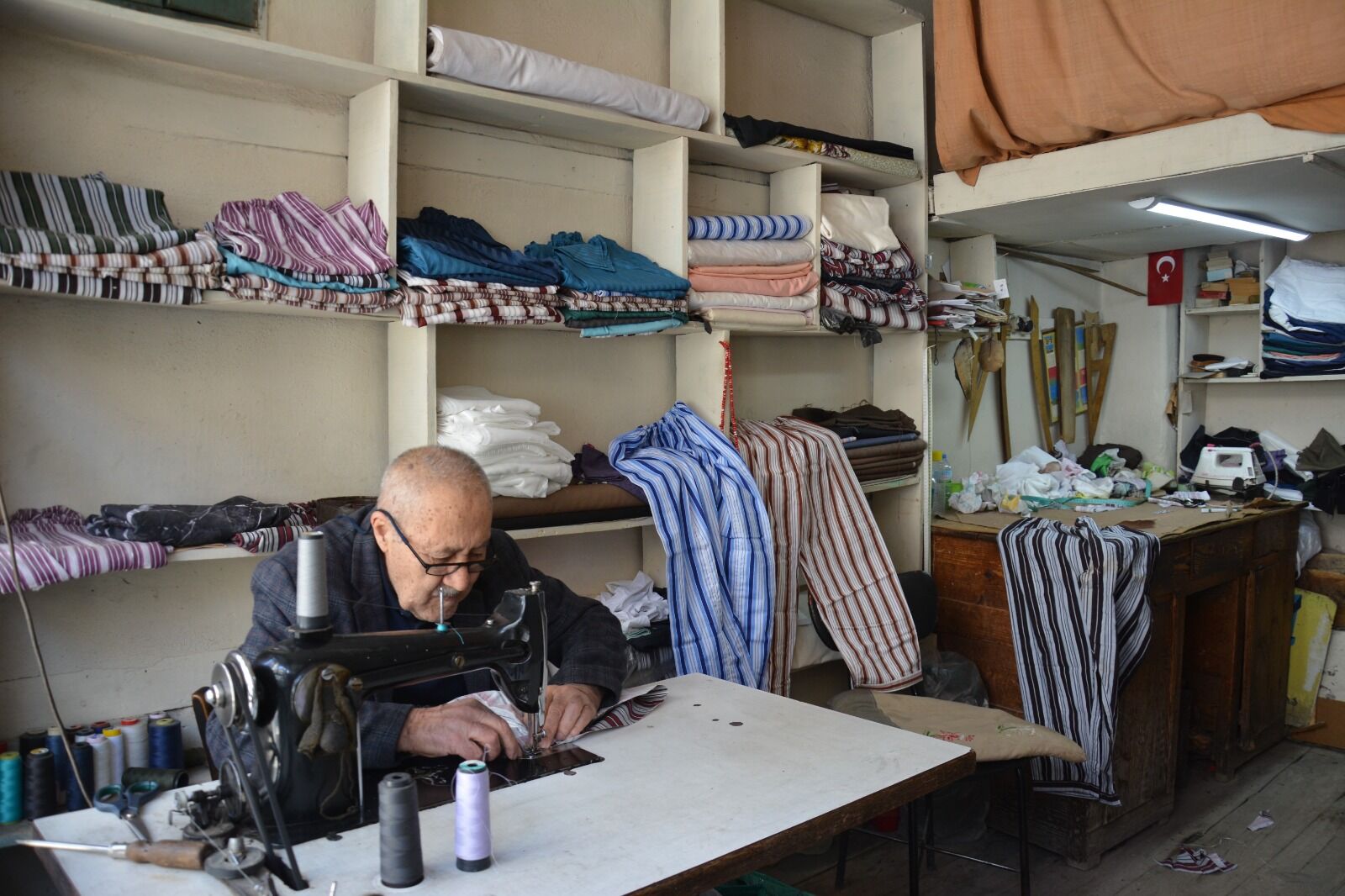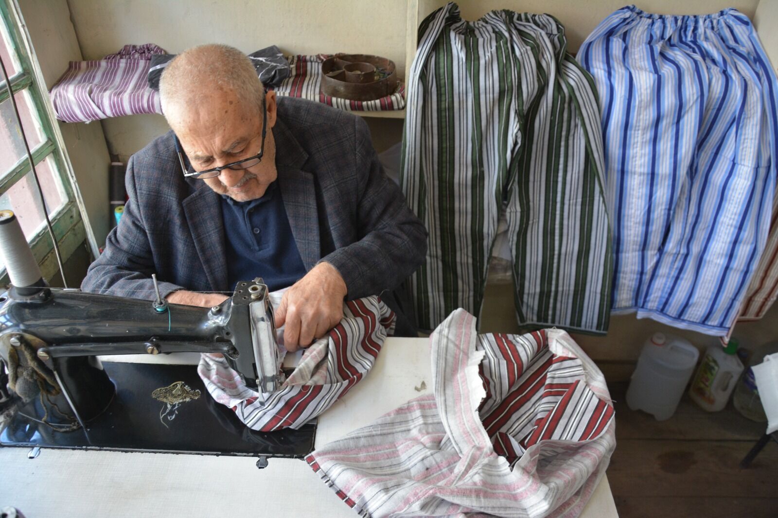 El emeğiyle hazırladığı pijama takımlarıyla geçmiş ile bugün arasında köprü kuran Yaşar Öztemel, küçük dükkanında büyük bir geleneği yaşatmaya devam ediyor.