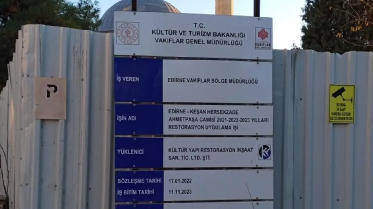 Edirne'nin Keşan ilçesnde önemli tarihi yapılarından olan Hersekzade Ahmet Paşa Camii’nin tadilat çalışmaları, 17 Ocak 2022 tarihinde başlamıştı. Kasım 2023’te tamamlanması planlanan proje, 2024 yılının son günlerinde halen bitirilebilmiş değil.Erdoğan DEMİR / EDİRNE (İGFA) - Edirne'nin Keşan ilçesinde 2 yıl önce başlayan ve geçen yıl tamamlanması hedeflenen Hersekzade Ahmet Paşa Camii'nin tadilatındaki gecikme 2024 yılının son günlerine girildiği şu günlerde halen devam ediyor.