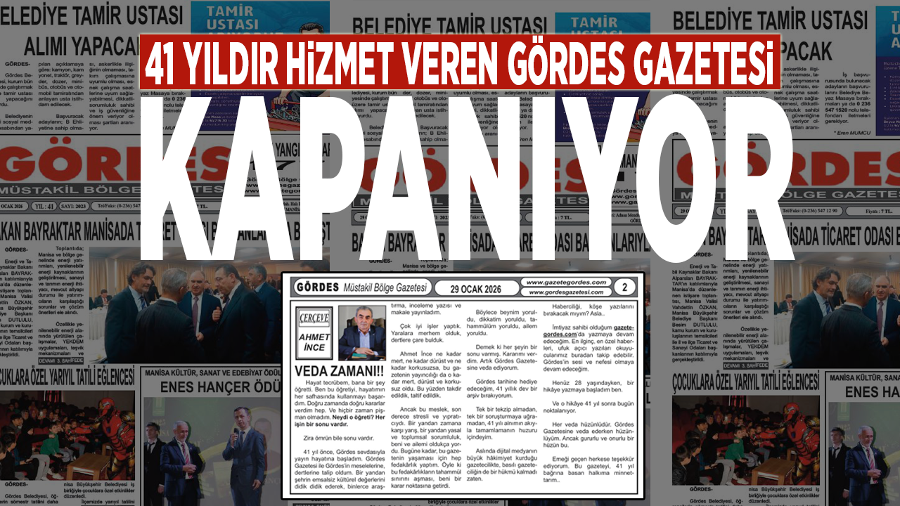 Haftada iki gün (Pazartesi, Perşembe) basılı olarak hizmet veren ve bundan 41 yıl önce yayın hayatına başlayan Gördes Gazetesi artık kapanıyor. Gazetenin Başyazarı Ahmet İnce, köşe yazısında gazetenin kapanacağı duyurdu.