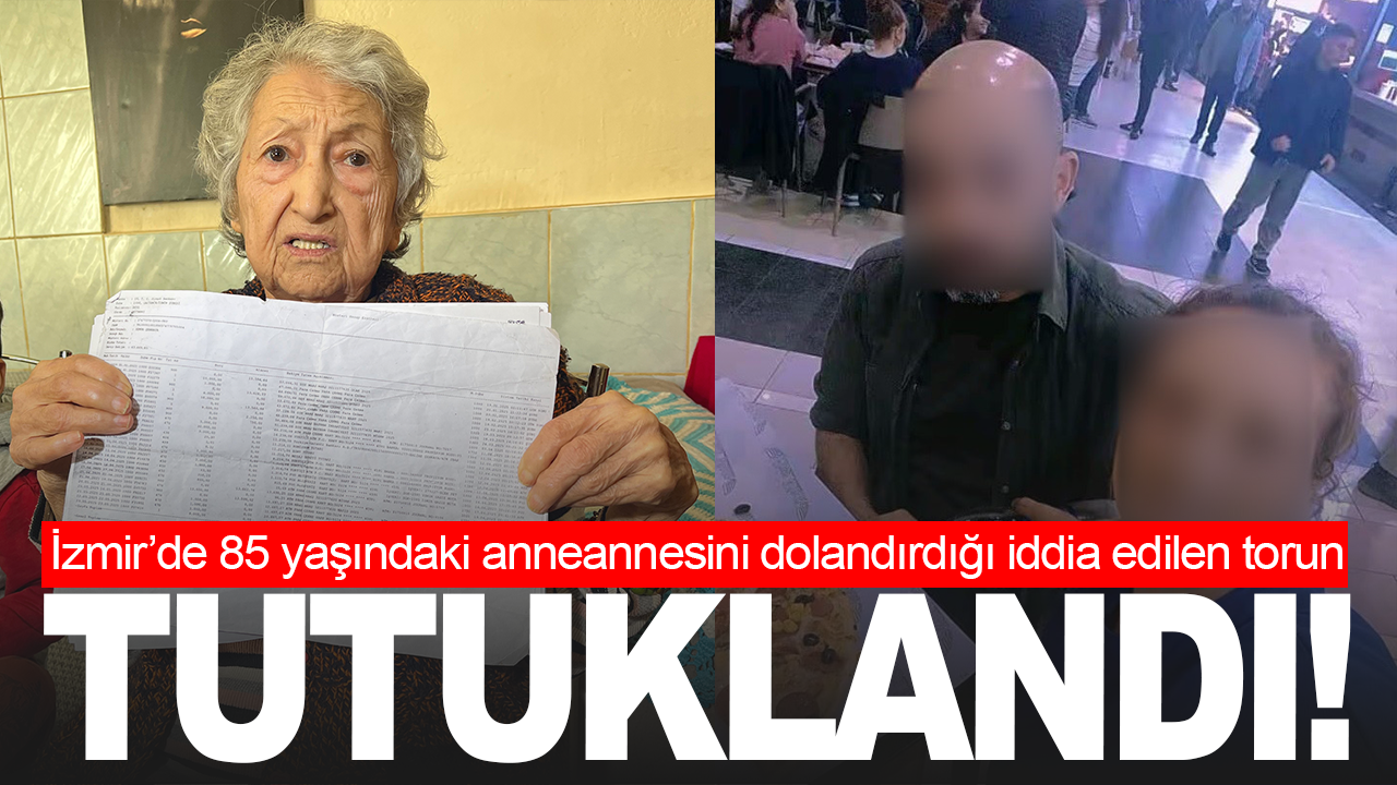 İzmir’in Gaziemir ilçesinde, 85 yaşındaki anneannesinin taşınmazını hileli yollarla üzerine geçirdiği iddia edilen torun ve suç ortağı, "Kişinin algılama yeteneğinin zayıflığından yararlanmak suretiyle dolandırıcılık" suçlamasıyla tutuklandı.
