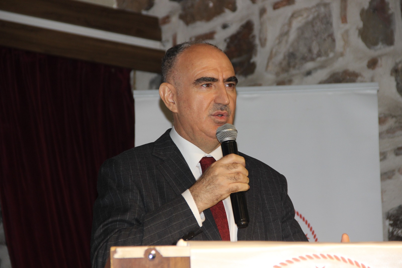 Saygı duruşunda bulunulması ve İstiklal Marşı'nın okunmasının ardından bedestendeki programın açılış konuşmasını yapan MESOB Başkanı Hasan Geriter, "Önemli olan toplumun sosyal, ekonomik dokusu ile son derece uyumlu olan esnaf ve sanatkarın varlığını koruyacak tedbirler almak zorundayız. O nedenle bizler de esnaf ve sanatkar camiası olarak işyerlerimizde çalışanımızla ve teşkilatımızla kendimizi yeni süreçlere ve gelişmelere de uyarlamak zorundayız." dedi.