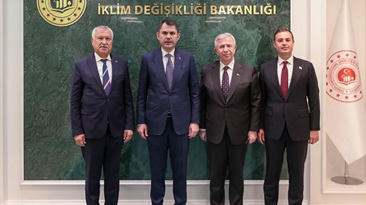 Çevre, Şehircilik ve İklim Değişikliği Bakanı Murat Kurum, Türkiye Belediyeler Birliği Başkan Vekili ve Adana Büyükşehir Belediye Başkanı Zeydan Karalar, Ankara Büyükşehir Belediye Başkanı Mansur Yavaş ve Balıkesir Büyükşehir Belediye Başkanı Ahmet Akın'ı kabul etti.ANKARA (İGFA) - Çevre, Şehircilik ve İklim Değişikliği Bakanlığı'nda gerçekleşen kabulle ilgili sosyal medya hesabından paylaşım yapan Bakan Murat Kurum, Türkiye Belediyeler Birliği Başkan Vekili ve Adana Büyükşehir Belediye Başkanı Zeydan Karalar, Ankara Büyükşehir Belediye Başkanı Mansur Yavaş ve Balıkesir Büyükşehir Belediye Başkanı Ahmet Akın'ı ağırladığını açıkladı. Bakan Kurum, yerel yönetimlerle iş birliği içinde çalışmayı sürdüreceklerinin mesajını verdi.