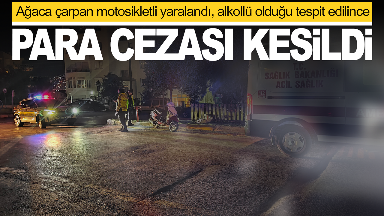 Ağaca çarpan motosikletli yaralandı, alkollü olduğu tespit edilince para cezası kesildi