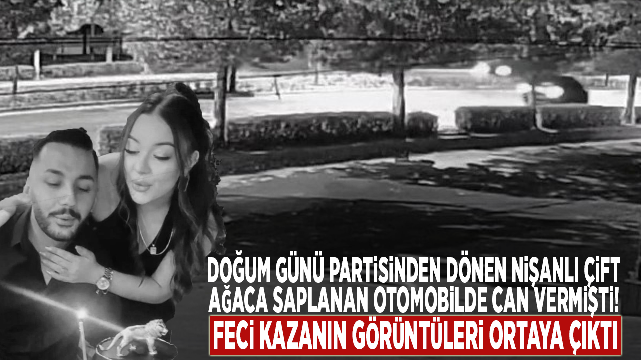 Öte yandan, alkollü doğum günü partisinden dönen nişanlı çiftin ölümüyle sonuçlanan kaza, bulvar üzerinde faaliyet gösteren bir iş yerinin güvenlik kamerası kayıtlarına yansıdı. Görüntülerde hızla ilerleyen otomobilin, kontrolden çıkarak yolun kenarındaki ağaca çarptığı anlar yer aldı.
