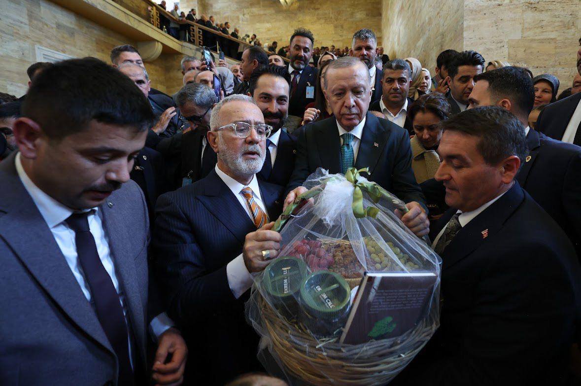 Manisa heyeti, Cumhurbaşkanı Recep Tayyip Erdoğan ve Grup Başkan Vekili Bahadır Yenişehirlioğlu ve Manisa Milletvekilleri ile ile hatıra fotoğrafı çektirerek bu anlamlı günü taçlandırdı. Grup Başkan Vekili Yenişehirlioğlu, sosyal medya hesabından yaptığı paylaşımda Cumhurbaşkanı Erdoğan’ın Manisa teşkilatını büyük bir memnuniyetle karşıladığını belirterek şu ifadeleri kullandı: “Cumhurbaşkanımız Sayın Recep Tayyip Erdoğan, Manisa teşkilatımıza ‘Hoş geldiniz’ diyerek Manisalı hemşehrilerimize selamlarını iletti.” Ziyaret kapsamında Manisa heyeti, Cumhurbaşkanı Erdoğan’a Manisa’nın bereketini ve kültürel zenginliğini yansıtan özel bir hediye takdim etti. Manisa’ya özgü zeytin, zeytinyağı, üzüm ve yöresel meyvelerden oluşan tanıtım sepeti, Manisa’nın tarımsal gücünü ve üretim kültürünü temsil eden sembolik bir armağan olarak Cumhurbaşkanı Erdoğan’a sunuldu.