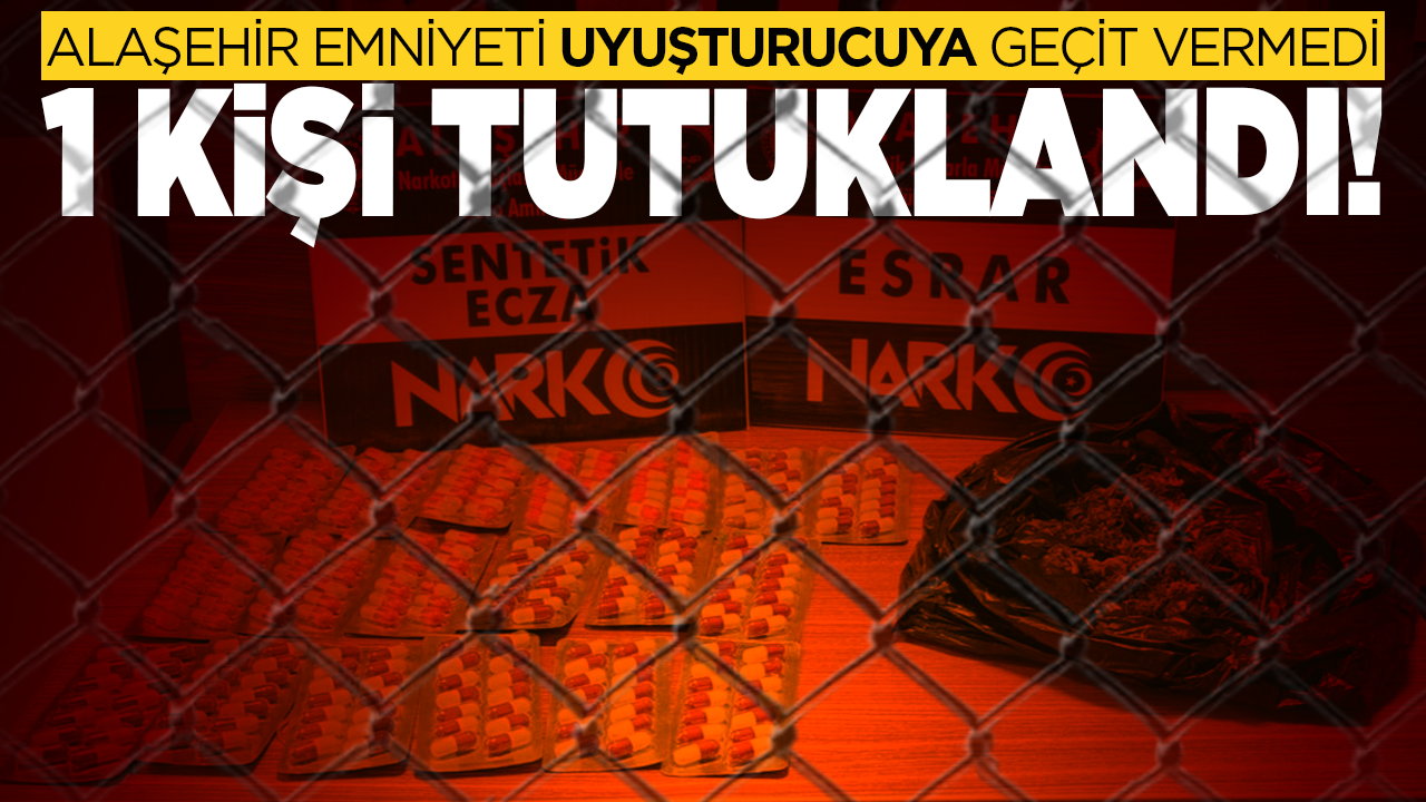 Manisa İl Emniyet Müdürlüğü Narkotik Suçlarla Mücadele Şube Müdürlüğü'ne bağlı Alaşehir Büro Amirliği ekiplerince Menderes Mahallesi’nde D.D. (18) isimli şahsa ait ikamette yapılan aramada 11 şerit halinde 154 adet sentetik ecza hap, 8 şerit halinde 112 adet sentetik ecza hap ile 36,91 gram esrar maddesi ele geçirildi. Gözaltına alınan D.D., emniyetteki işlemlerinin ardından sevk edildiği mahkemece tutuklanarak cezaevine gönderildi.