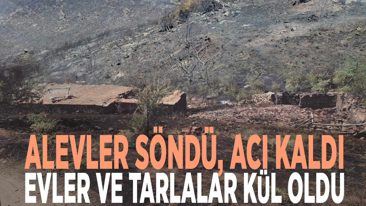 Büyük bir yıkıma yol açan yangından geriye küle dönen evler ve tarlalar kaldı. Bölgede inceleme yapan ev ve tarla sahipleri o anları cep telefonuyla görüntüledi.