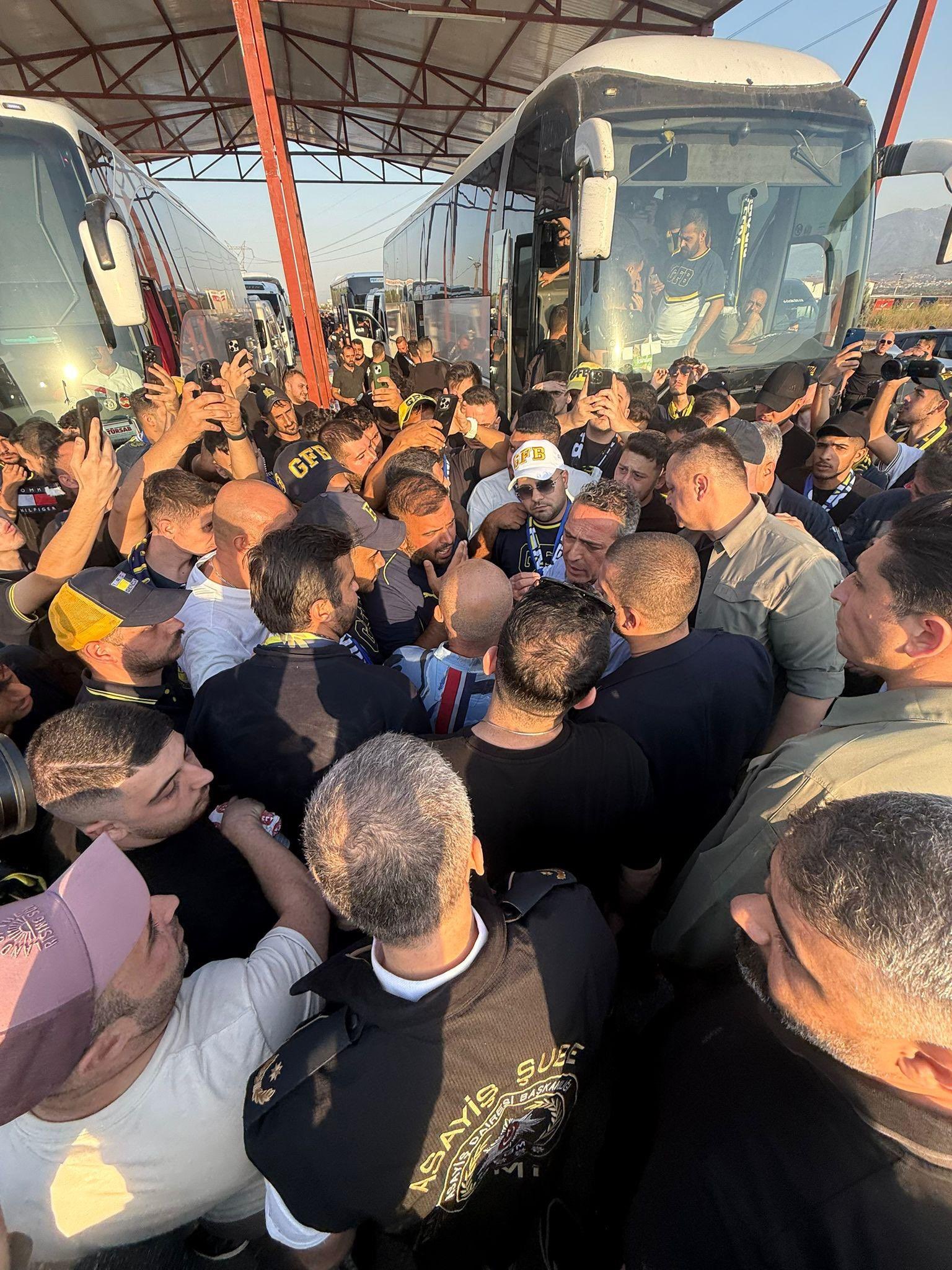 İZMİR (İHA) - Trendyol Süper Lig'in 2. haftasında Fenerbahçe, deplasmanda Göztepe ile karşı karşıya gelecek. Mücadele öncesi Başkan Ali Koç ve yönetim kurulu üyeleri, taraftarlarla bir araya gelerek birlikte otobüslerle stada gitti. Sarı-lacivertli taraftarlar Başkan Koç'a büyük ilgi gösterdi. Fenerbahçe Başkanı yoğun ilgi nedeniyle yürümekte zorlandı.