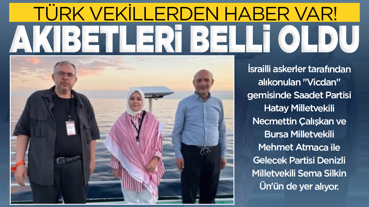 İsrailli askerler tarafından alıkonulan "Vicdan" gemisinde Saadet Partisi Hatay Milletvekili Necmettin Çalışkan ve Bursa Milletvekili Mehmet Atmaca ile Gelecek Partisi Denizli Milletvekili Sema Silkin Ün'ün de yer alıyor.