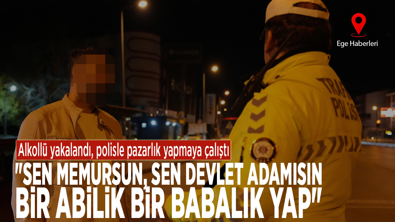 Alkolmetreyi üfledikten sonra aracından inen sürücünün polis ekipleriyle pazarlık yapmaya çalıştı. Sürücünün, "Sen memursun, devlet adamısın lütfen bir abilik bir babalık yap. Bırak beni" ve "Ehliyetli birisini getireyim o sürsün ama ceza yazmayın" dedi.