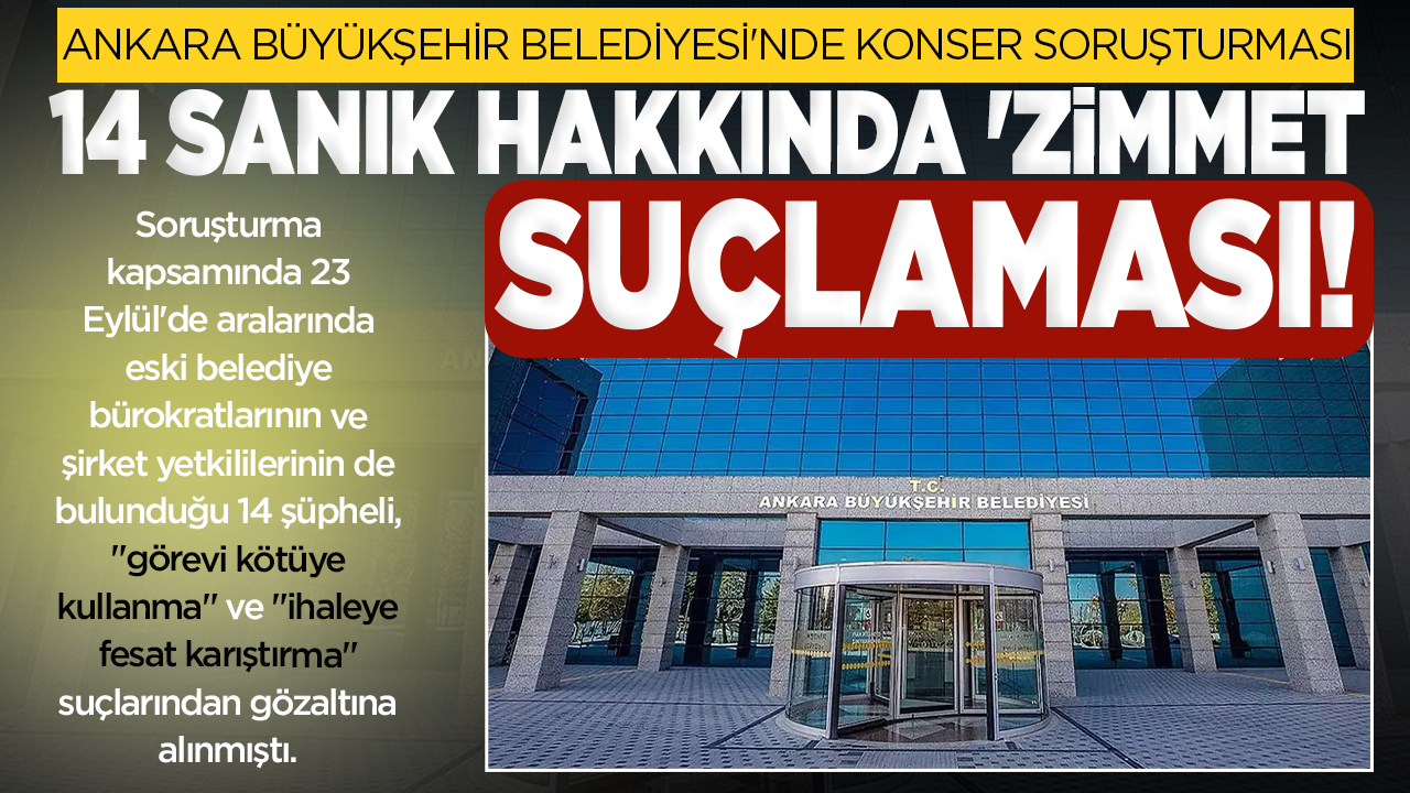 Ankara Büyükşehir Belediyesi'ne yönelik konser soruşturmasında iddianame tamamlandı. 5'i tutuklu toplam 14 sanık hakkında zimmet suçundan dava açıldı.
