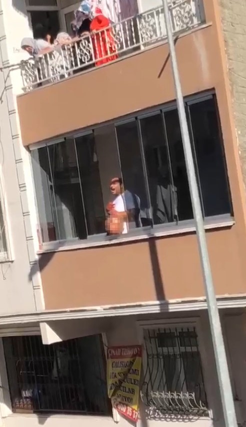 Öte yandan, gencin annesin kafasını balkondan atma anı cep telefonu kamerasına yansıdı. Görüntüde, yolda ve evlerinin balkonunda bulunan vatandaşların bağırdığı ve şahın kafayı yere attığı görülüyor.