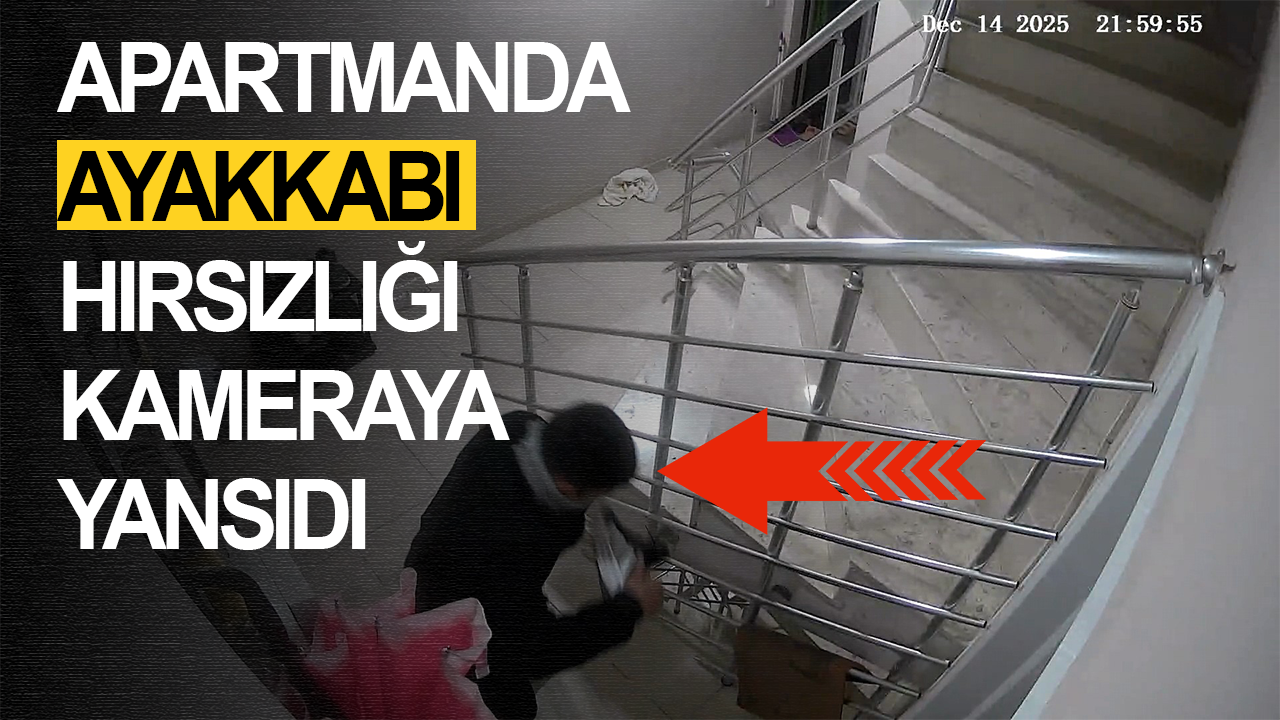 Apartmandan ayakkabı hırsızlığı kameraya yansıdı