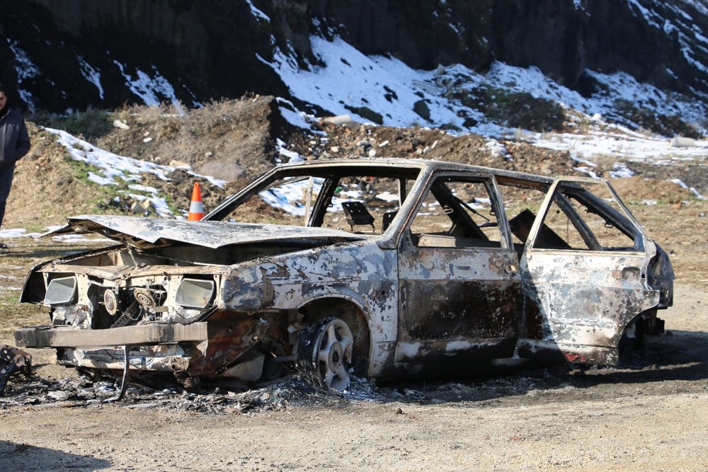 Küle dönen aracın arka koltuğunda bulunmuştu