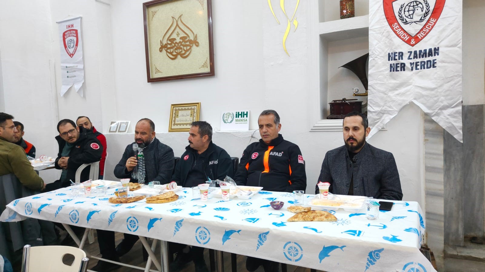 Düzenlenen iftar organizasyonu ile Manisa'da bulunan afetler ile alakalı çalıma yürüten kamu kurumları ve STK'lar iftar yemeğinde buluşarak ekiplerin kaynaşması sağlandı. İftar Programına Manisa AFAD İl Müdürü Osman Pıhtılı, Manisa Şehzadeler Belediye Afet Birim Sorumlusu Yasin İlban, UMKE, MEB AKUB, ANDA Arama Kurtarma, SODOS Arama Kurtarma, AFED Arama Kurtarma, TAMGA Arama Kurtarma, SAT Salihli Amatör Telsiz Ekibi, Memur-Sen Arama Kurtarma Ekipleri Katıldı.