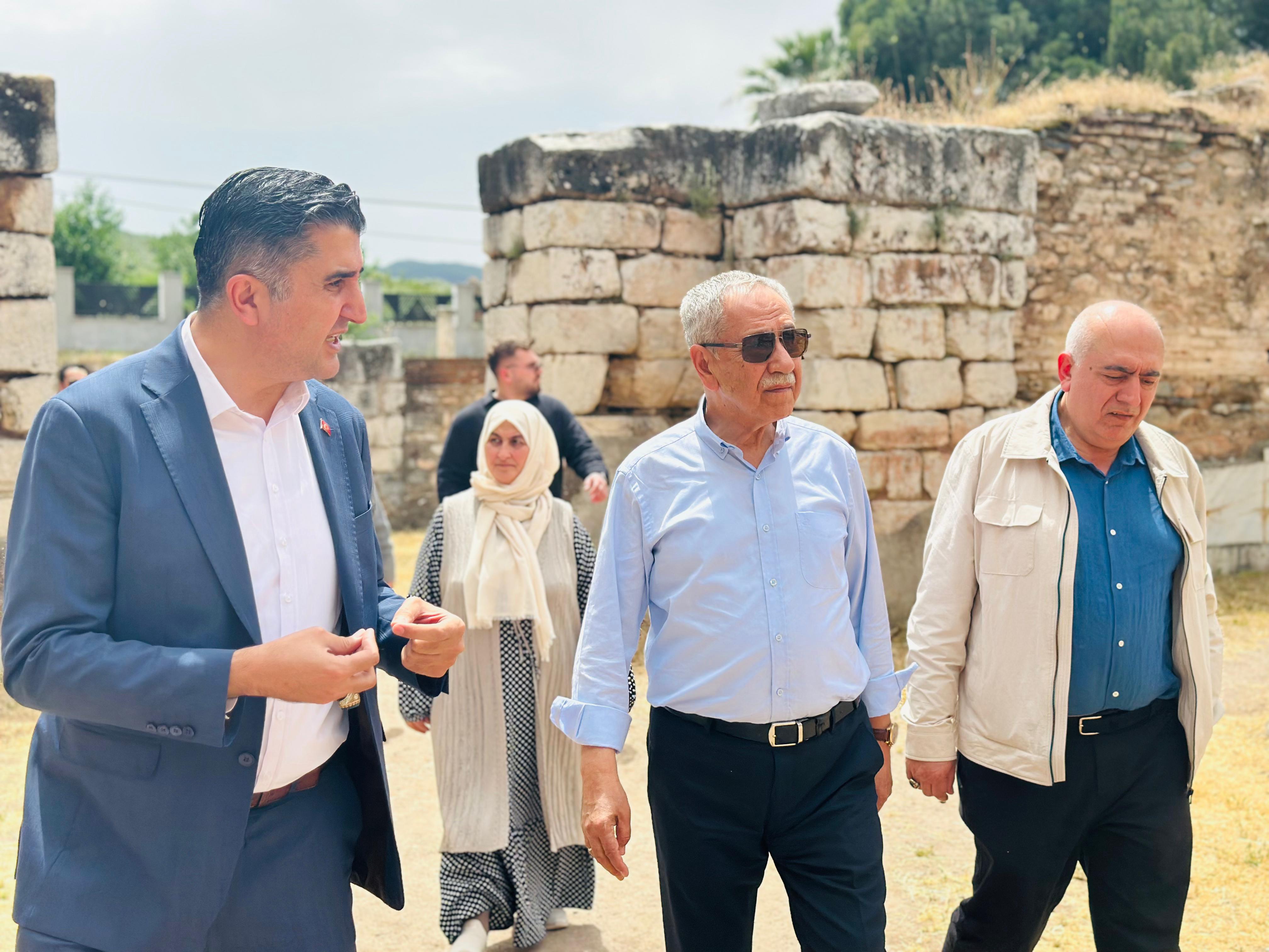 Arınç, Manisa Kültür ve Turizm Müdürü İbrahim Sudak ve yetkililerden Sardes ve Manisa Müzesi’nde bulunan eserler hakkında bilgi aldı.