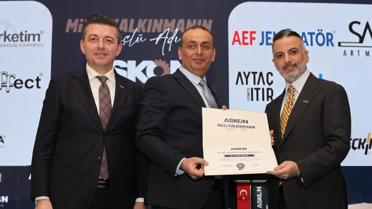 ASKON Konya Şubesi’nde görev değişimi yaşandı. Şubenin yeni başkanı iş adamı Yusuf Çimen oldu.KONYA (İGFA) - ASKON (Anadolu Aslanları İş Adamları Derneği) Konya Şubesi’nde önemli bir görev değişimi yaşandı. Mevcut Başkan Atilla Sinacı, işlerinin yoğunluğu nedeniyle başkanlık görevinden ayrıldı. Konya Şube yönetim kurulunun seçimi ve ASKON Genel Merkez yönetimi onayı ile daha önce başkan yardımcılığını başarıyla yürüten Yusuf Çimen, görevlendirme beratını ASKON Genel Başkanı Orhan Aydın’ın elinden aldı.