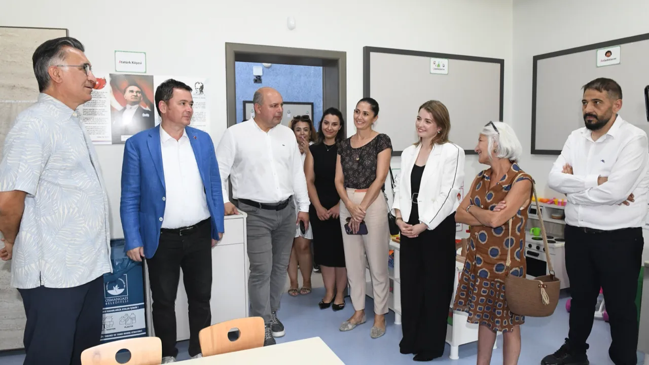 Osmangazi Belediye Başkanı Erkan Aydın, beraberinde Akademisyen Yazar Prof. Dr. Selçuk Şirin, Osmangazi Belediye Başkan Yardımcısı Ahmet Tolga Kornoşor, Ayça Azak’ın hayırsever ailesi Hilal Azak ve Metin Azak ile birlikte tesiste incelemelerde bulundu. Heyet, sınıfları, ortak kullanım alanlarını ve çocukların oyun alanlarını gezerek bilgi aldı.
