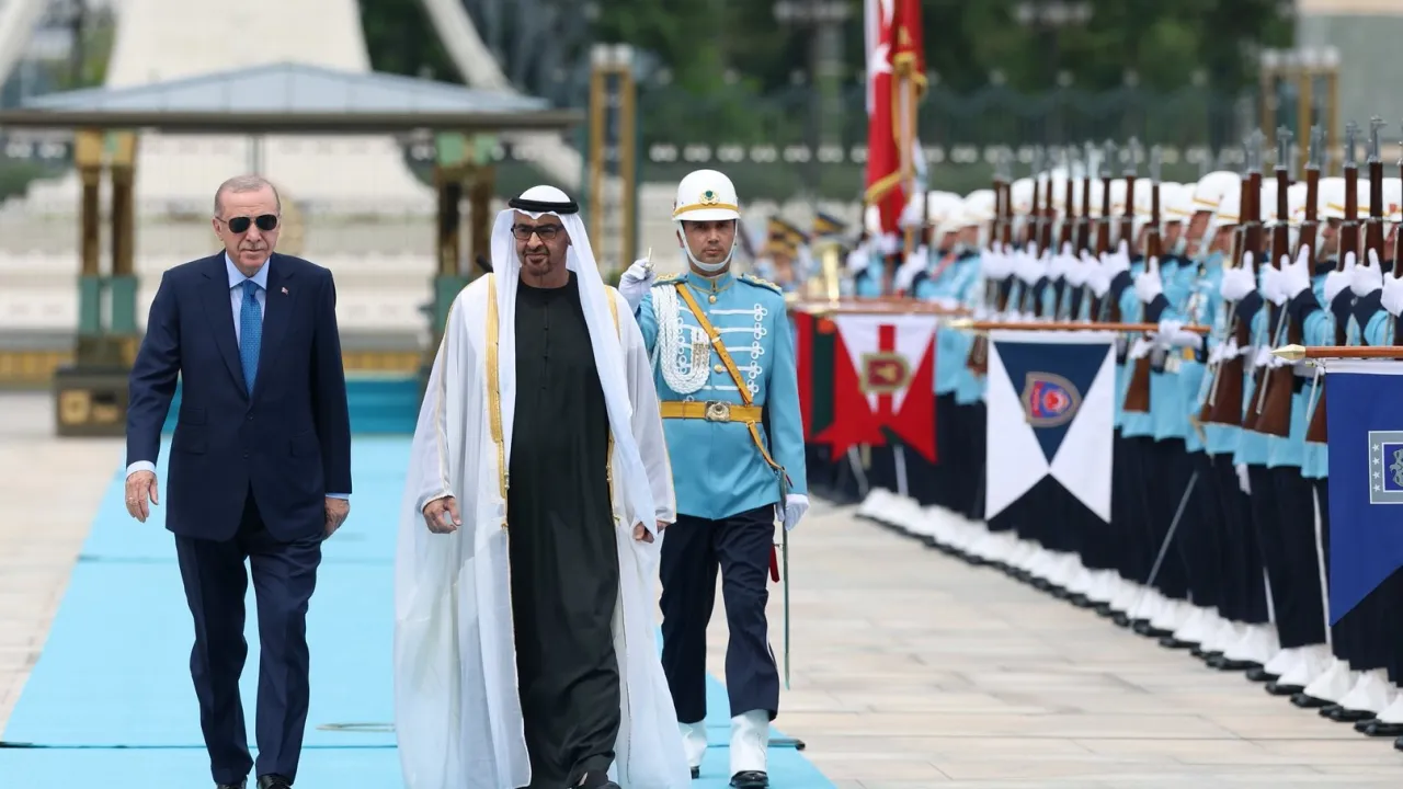 BAE Devlet Başkanı Al Nahyan, Muhafız Alayı Tören Kıtası'nı "Merhaba asker" diyerek selamladı. Cumhurbaşkanı Erdoğan ve Al Nahyan birbirlerine heyetlerini takdim etti.