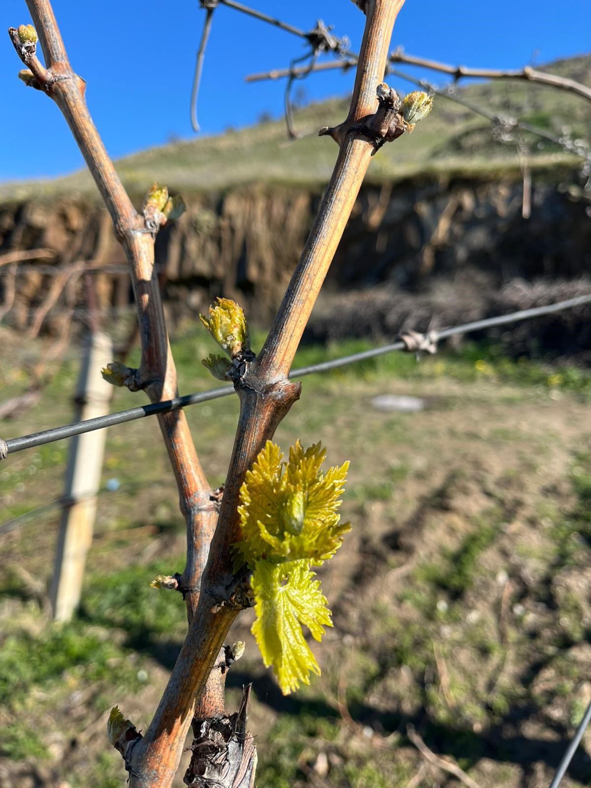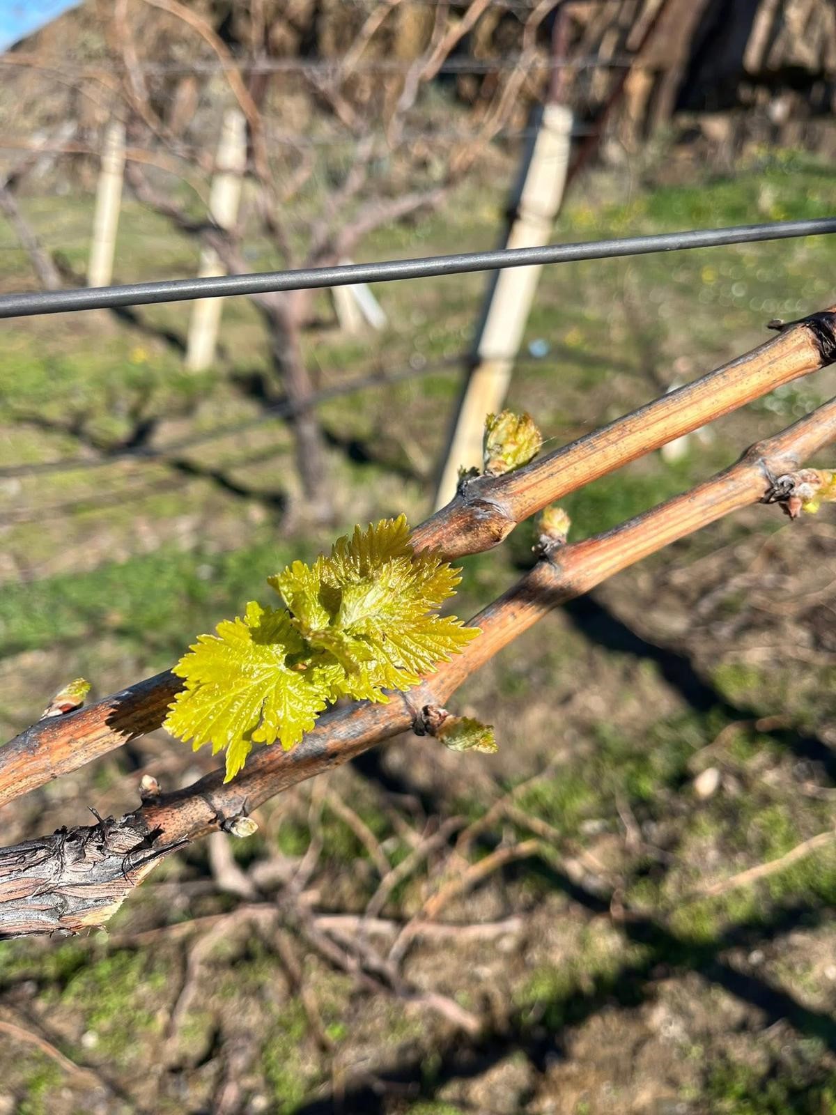 Sarıgöl'ün Tırazlar Mahallesi'nde 25 dekarlık erkenci Süperyol üzüm bağı bulunan üretici Aytaç Ünlükoç, çubuk bağlama çalışması yaptığı sırada bağ çubuklarındaki gözlerin patladığını ve yaprakların belirgin şekilde ortaya çıktığını fark etti.