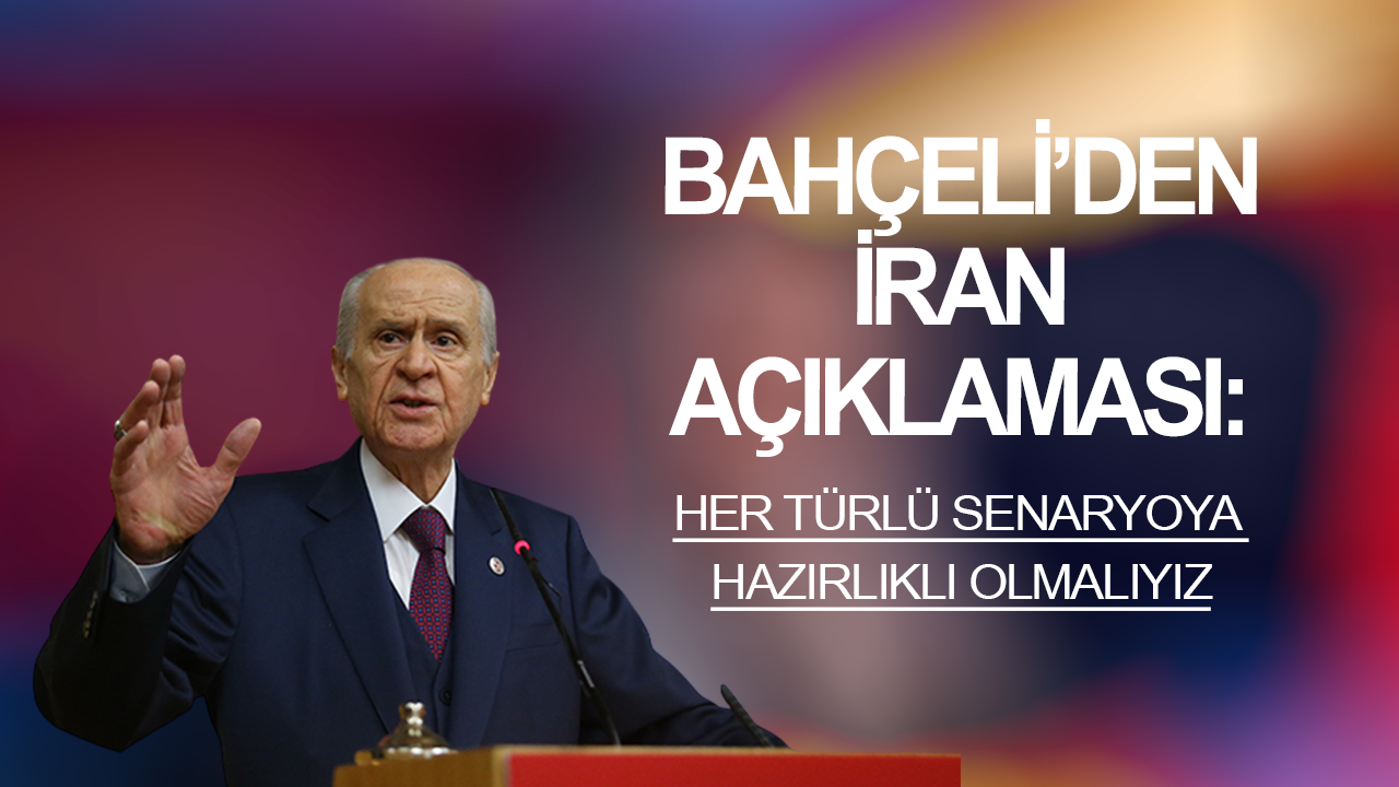 MHP Genel Başkanı Devlet Bahçeli, İran'la ilgili yaptığı yeni açıklamasında, " Hiçbir tehdide eyvallah demeyiz. ABD- İsrail ortaklığının askeri, siyasi ve ekonomik külfeti artıkça, etrafımızda biriken tehlike daha da yoğunlaşacaktır. Her türlü senaryoya hazırlıklı olmalıyız." dedi.