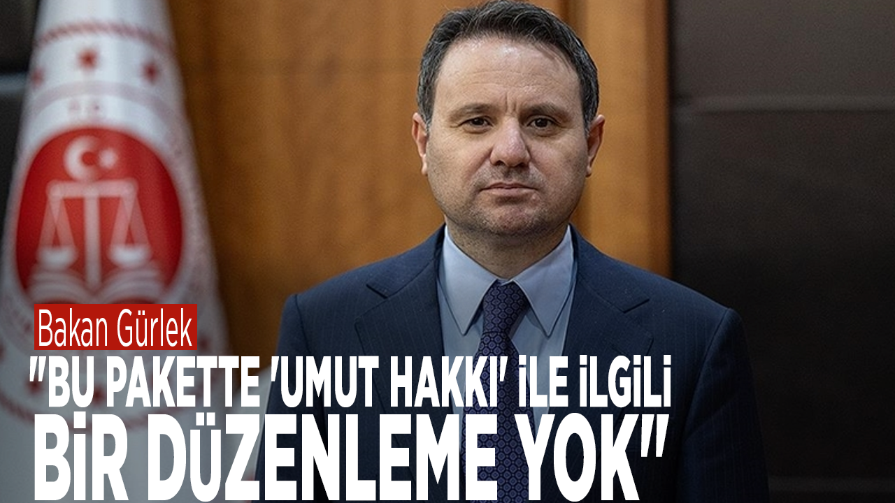 Bakan Gürlek, "umut hakkı" ile ilgili soruya, "Umut hakkı çok konuşuldu. Ben rapora baktım 'umut hakkı' diye bir ibare yok. Bizde terörden dolayı ağırlaştırılmış müebbet hapis cezaları var. Eskiden idam cezasıydı. İdam cezası kalktığı için terörden dolayı ağırlaştırılmış hapis cezaları var. Ağırlaştırılmış müebbet hapis cezaları aynen infaz ediliyor. Yani ölene kadar infazı gerçekleşiyor. Yani şartlı salıverme ya da koşullu salıverme hükümlerinden yararlanamıyor. Burada Meclis'imizin takdiri. Bir düzenleme yapar mı, yapmaz mı bilmiyorum ama bu pakette 'umut hakkı' ile ilgili bir düzenleme yok" cevabını verdi.