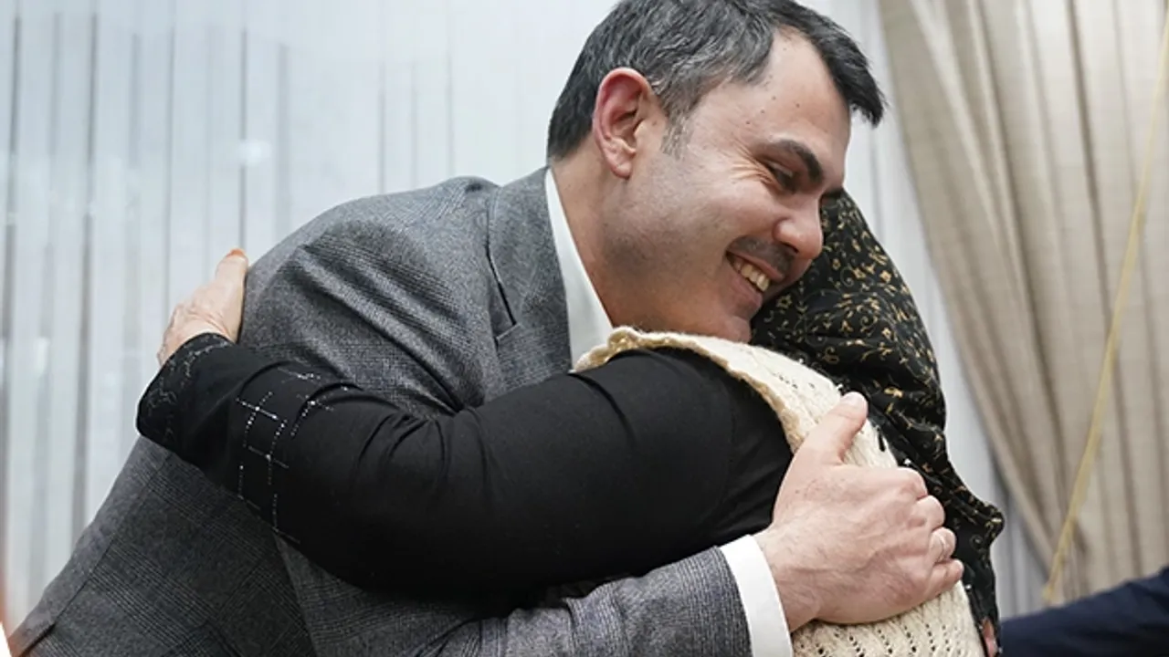 Yılmaz, Bakan Kurum’u “Neredesin sen? Çadırda alnından öptüğün çocuk dediler. Televizyondan tanıdım seni. Bakan o dedim” sözleriyle karşılayıp alnından öptü.