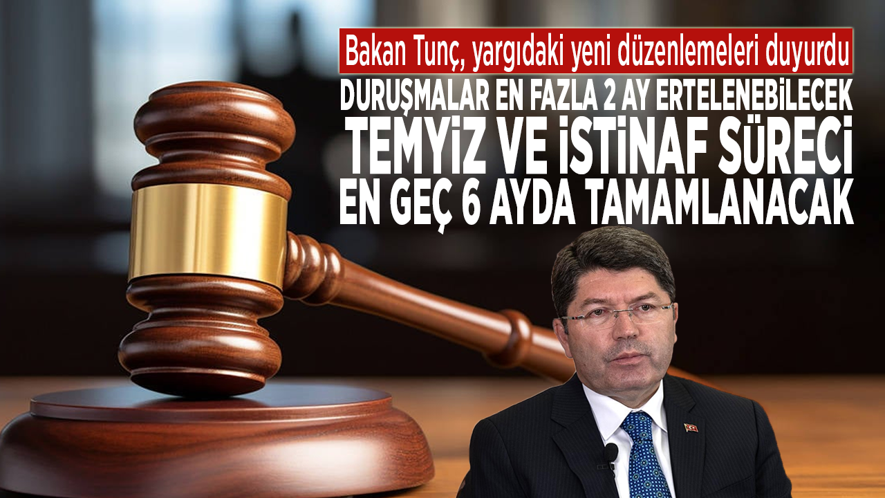 İktidara yakın Sabah gazetesine konuşan Bakan Tunç, "Temyiz ve istinaf incelemeleri en geç 6 ayda bitecek. Bazı davalarda doğrudan temyiz yolu getirilecek" ifadelerini kullandı.