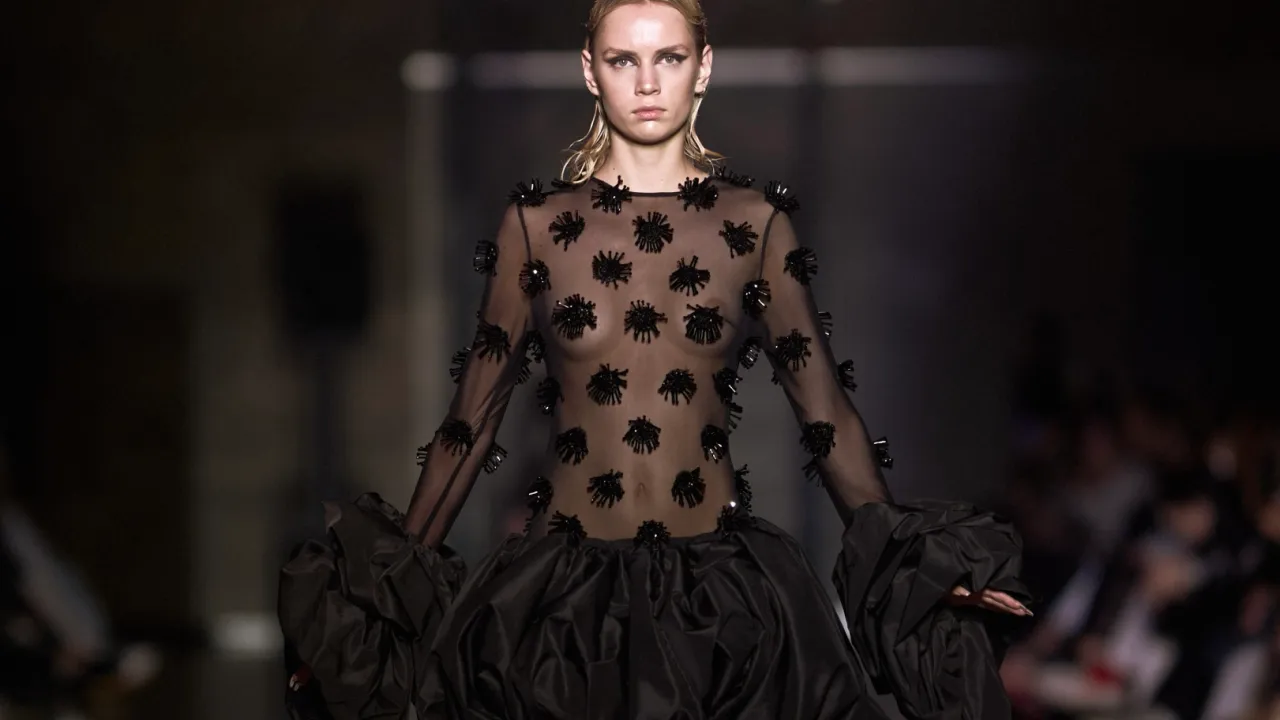 Transparan dokularla bütünleşen heykelsi formlar, zamansız şıklığı, dişil gücü ve stilin dönüştürücü etkisini ortaya koyuyor. İnce transparan dokularla birleşen heykelsi formlar, zarafeti bir zırh gibi taşıyan güçlü kadın silüetlerini sahneye taşındı.