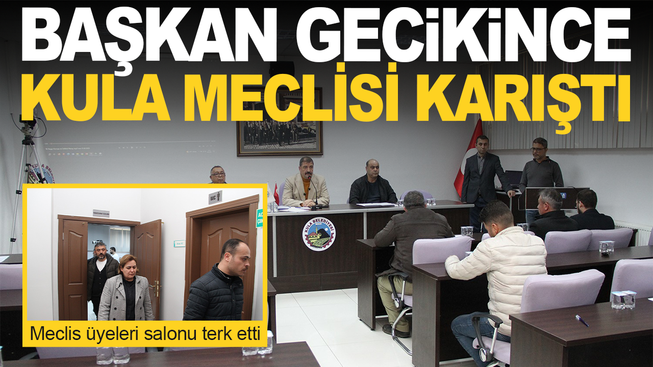 Meclis toplantısına CHP Manisa İl Başkanı İlksen Özalper ile CHP Manisa milletvekilleri Ahmet Vehbi Bakırlıoğlu, Bekir Başevirgen ve Aydın CHP Milletvekili Evrim Karakoz da katıldı. Beledye Meclis Toplantısı, yaşanan gecikme ve ardından gelişen tepkiler nedeniyle gerçekleştirilemedi. Kula Belediye Başkanı Hikmet Dönmez'in meclis salonuna yaklaşık 10 dakika geç gelmesi üzerine muhalefet meclis üyelerinin salonu terk etmesinin ardından Belediye Başkanı Hikmet Dönmez de salondan çıkarak meclisin birlikte yapılması gerektiğini ifade etti. Dönmez, toplantıya katılan misafirlerin bulunduğunu belirterek yaşanan durumun etik olmadığını dile getirdi. CHP Manisa İl Başkanı İlksen Özalper ise gecikmenin kendilerinden kaynaklandığını belirterek, "Grup toplantımız biraz uzadı, benim yüzümden oldu. Biraz fazla konuşuyorum, kusura bakmayın. Özür dilerim" dedi. Milletvekilleri de meclis toplantısının yapılması yönünde çağrıda bulundu.