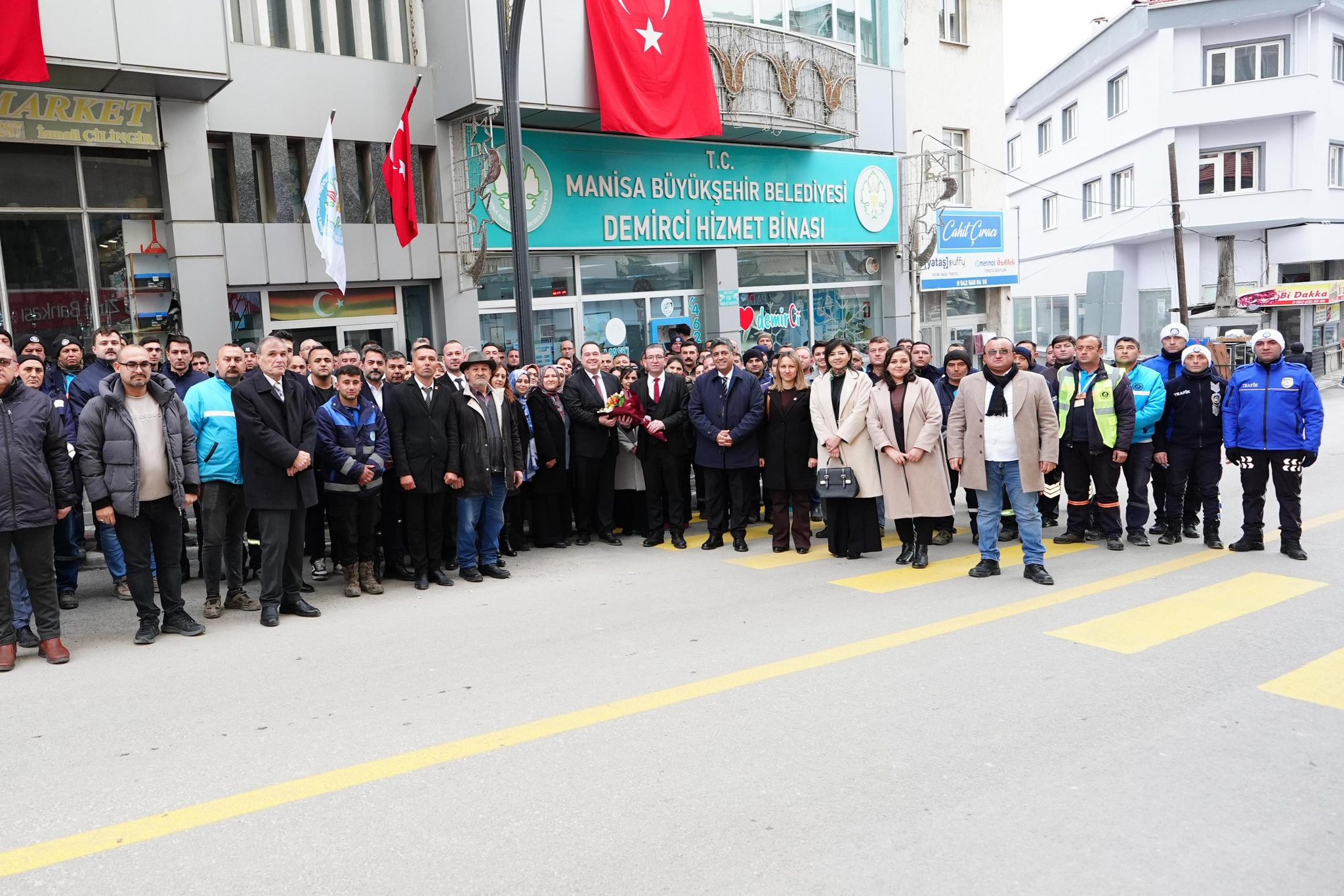Manisa Büyükşehir Belediye Başkanı Besim Dutlulu, Demirci Belediyesi ziyaretinin ardından Manisa Büyükşehir Belediyesi’nin Demirci’deki hizmet birimlerini de ziyaret ederek personellerle bir araya geldi. Personeller tarafından çiçek takdim edilen Başkan Besim Dutlulu, gösterdikleri emek için çalışma arkadaşlarına teşekkür etti.