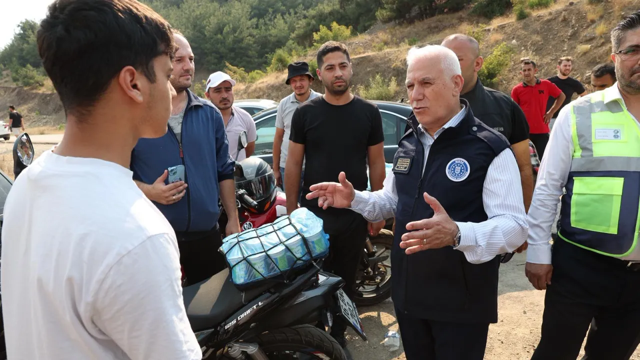 Büyükşehir Belediyesi itfaiye teşkilatının, diğer birimlerinin, sivil toplum kuruluşlarının ve vatandaşların yangının söndürülmesi konusunda büyük çabası olduğunu söyleyen Başkan Mustafa Bozbey, özellikle köylülerin traktör ve tankerleriyle yangın alanına yardım giderek büyük gayret gösterdiğini belirtti.
