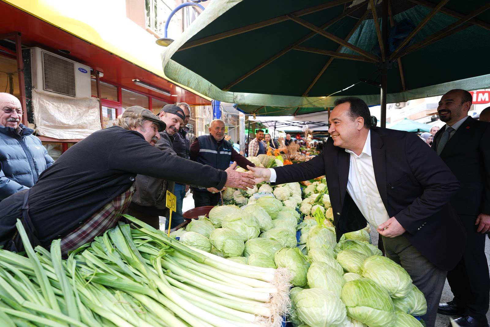 Başkan Dutlulu, pazarcı esnafına bol ve bereketli kazançlar dileyerek, tüm Manisa halkına hayırlı ve bereketli haftalar temennisinde bulunarak ziyaretini sonlandırdı.