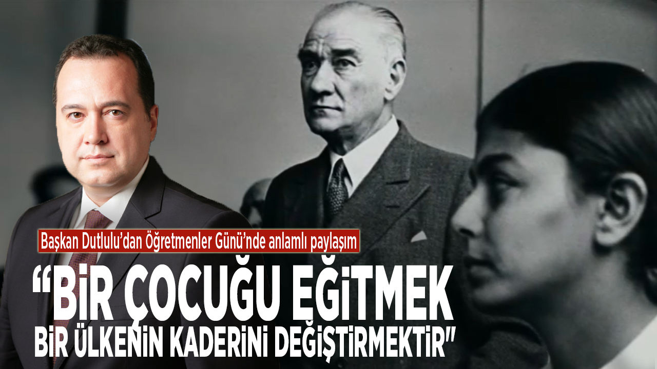 Başkan Dutlulu, paylaşımında, “Bir çocuğu eğitmek, bir ülkenin kaderini değiştirmektir. Yarınlarımızın mimarı, fedakârlığın ve sevginin simgesi kıymetli öğretmenlerimize minnettarız. Başta Başöğretmenimiz Gazi Mustafa Kemal Atatürk olmak üzere, geleceğe ışık tutan, bilgisi ve sevgisiyle yolumuzu aydınlatan tüm öğretmenlerimizin 24 Kasım #ÖğretmenlerGünü kutlu olsun.” ifadelerine yer verdi.