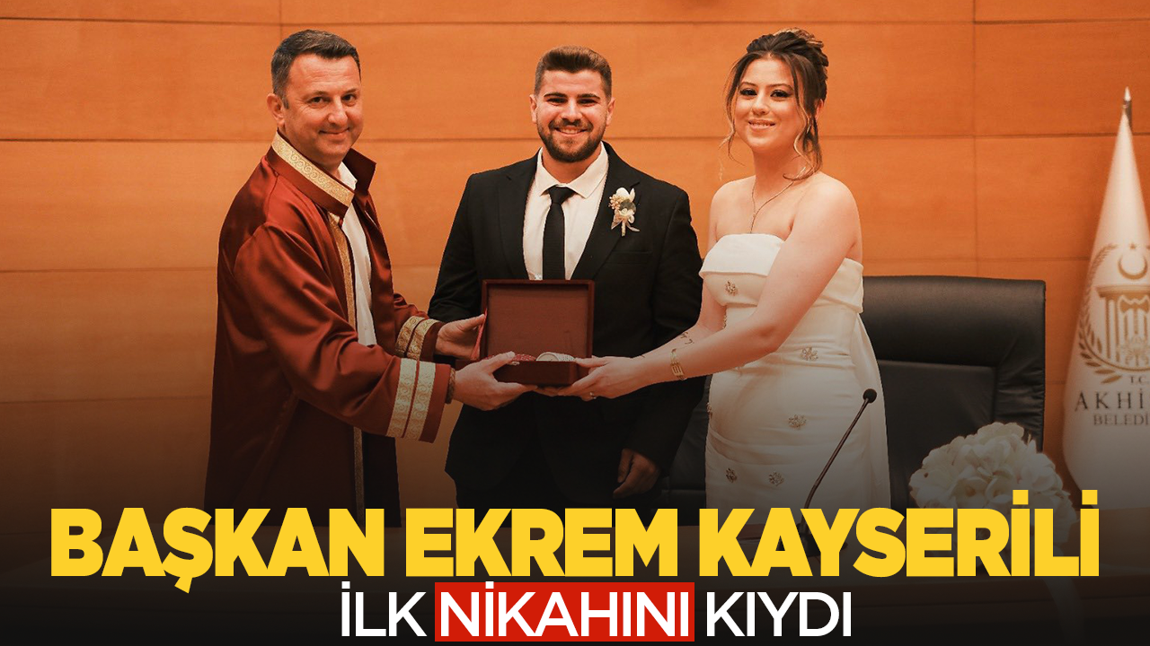 Nikah töreni, çekilen hatıra fotoğraflarıyla sona erdi. Başkan Ekrem Kayserili’nin kıydığı ilk nikâh, salondaki davetlilerden büyük alkış aldı.