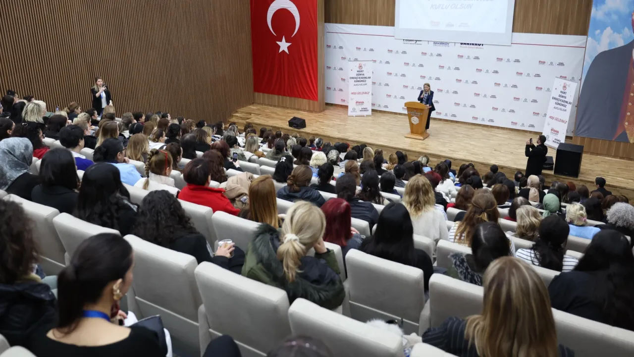 İstanbul Bakırköy Belediye Başkanı Doç. Dr. Ayşegül Ovalıoğlu, 8 Mart Dünya Emekçi Kadınlar Günü etkinlikleri kapsamında belediyenin kadın çalışanlarıyla buluştu. Buluşmada kadın çalışanlar için hazırlanan video gösterimi de yapıldı. Ardından Başkan Ovalıoğlu sahneye çıkarak bir konuşma yaptı.İSTANBUL (İGFA) - İstanbul'da kadınların sosyal hayatta daha güçlü temsil edilmesi için çalıştıklarını ifade eden Başkan Ovalıoğlu, “Bakırköy'ü kadınlarla birlikte dönüştüreceğiz. Hep beraber, el birliğiyle başaracağız.