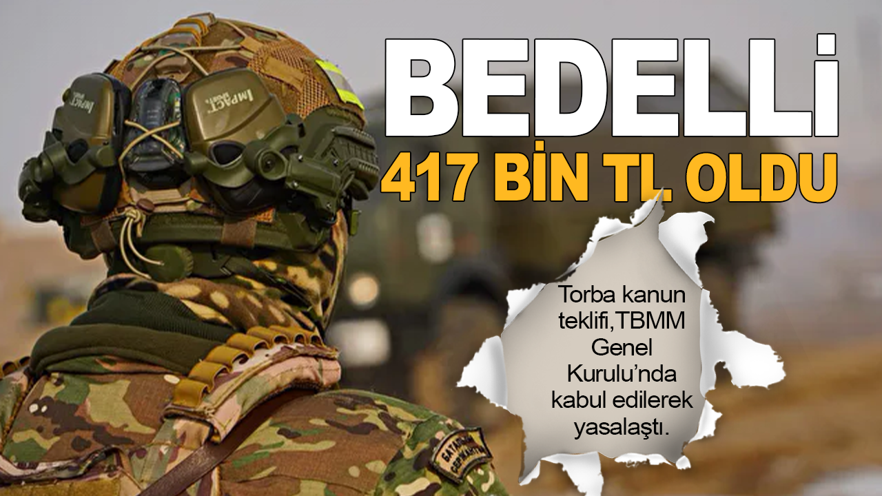 Bedelli askerlik tutarının 417 bin liraya çıkarılmasını öngören düzenlemenin de içinde bulunduğu torba kanun teklifi, TBMM Genel Kurulu'nda kabul edildi.