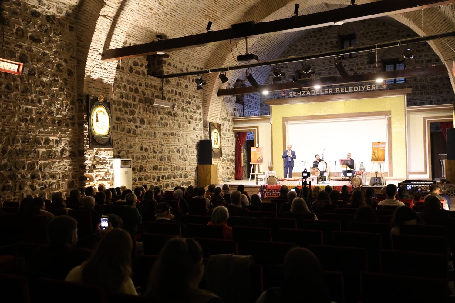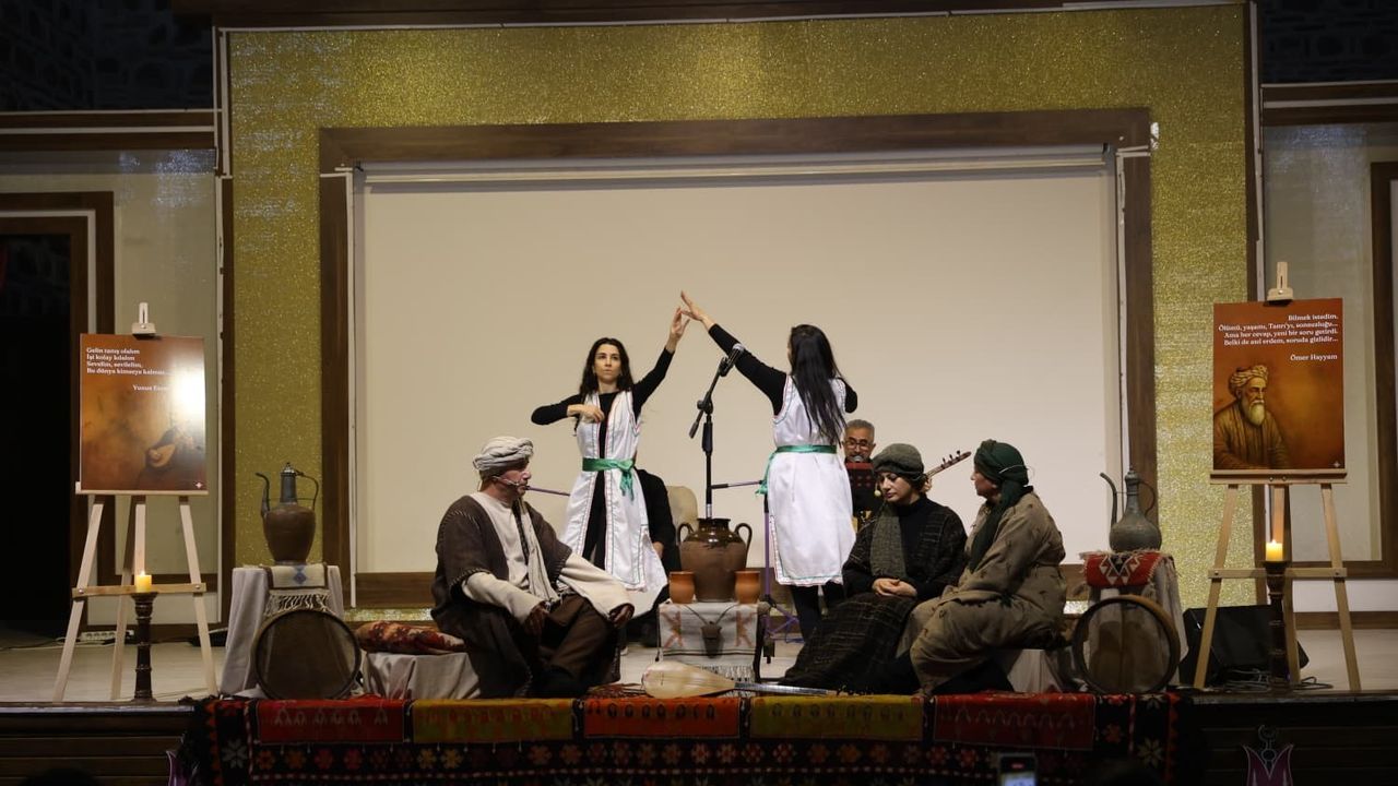 MANİSA (İHA) - Tarihi Bedesten Salonu’nda gerçekleştirilen etkinlikte, Ömer Hayyam’dan Yunus Emre’ye uzanan hikmet dolu sözler, insanı merkeze alan kadim değerler ve kültürel miras yeniden hatırlatıldı. Programın açılış konuşmasını Yunusemre Kent Konseyi Başkanı Bektaş Kılınç yaptı. Kılınç konuşmasında; kadim düşünce geleneğinde aşk ve aklın birbirini tamamlayan iki kutup olduğuna dikkat çekerek, bu değerlerin hatırlatılmasının toplumun kültürel zenginliği açısından önem taşıdığını vurguladı. Konuşmanın ardından başlayan gösterim, teatral anlatımlar ve geçmişten günümüze uzanan ezgiler ile devam etti.