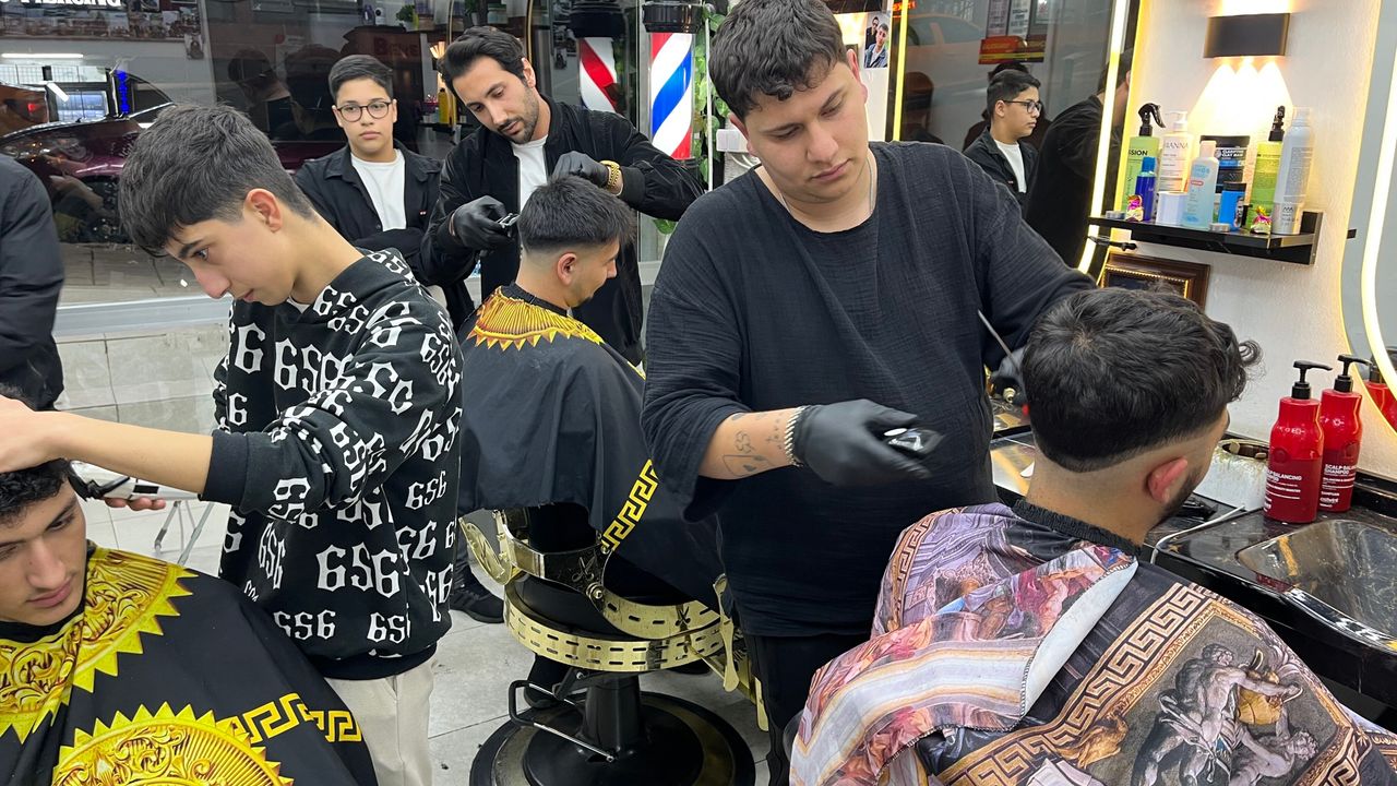 İşletme çalışanı Umut Sayar, "Sabahtan bu yana 25-30 tıraş oldu, bir o kadar daha randevumuz var. Sıfır hata ile hizmet vermeye çalışıyoruz yorgun olsak da. Kolay bir iş değil" dedi.
