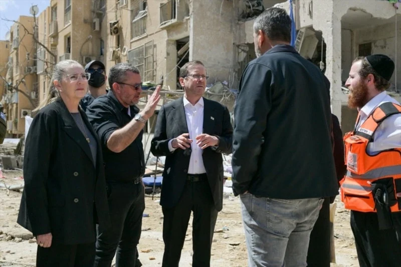 İsrail Cumhurbaşkanı Isaac Herzog ve İsrail Başbakanı Binyamin Netanyahu, İran’ın İsrail’e yönelik misilleme saldırısında bir füzenin isabet ederek hasara yol açtığı Arad kentinde incelemelerde bulundu.
