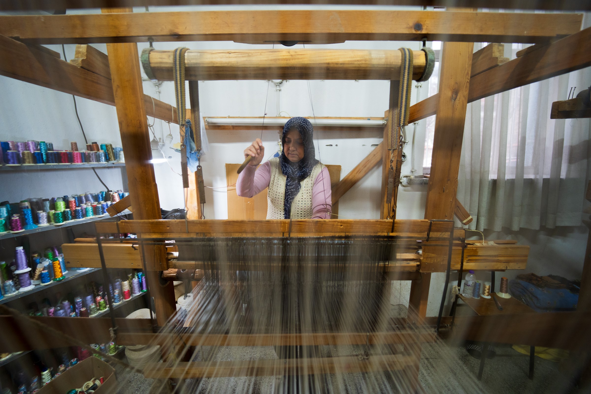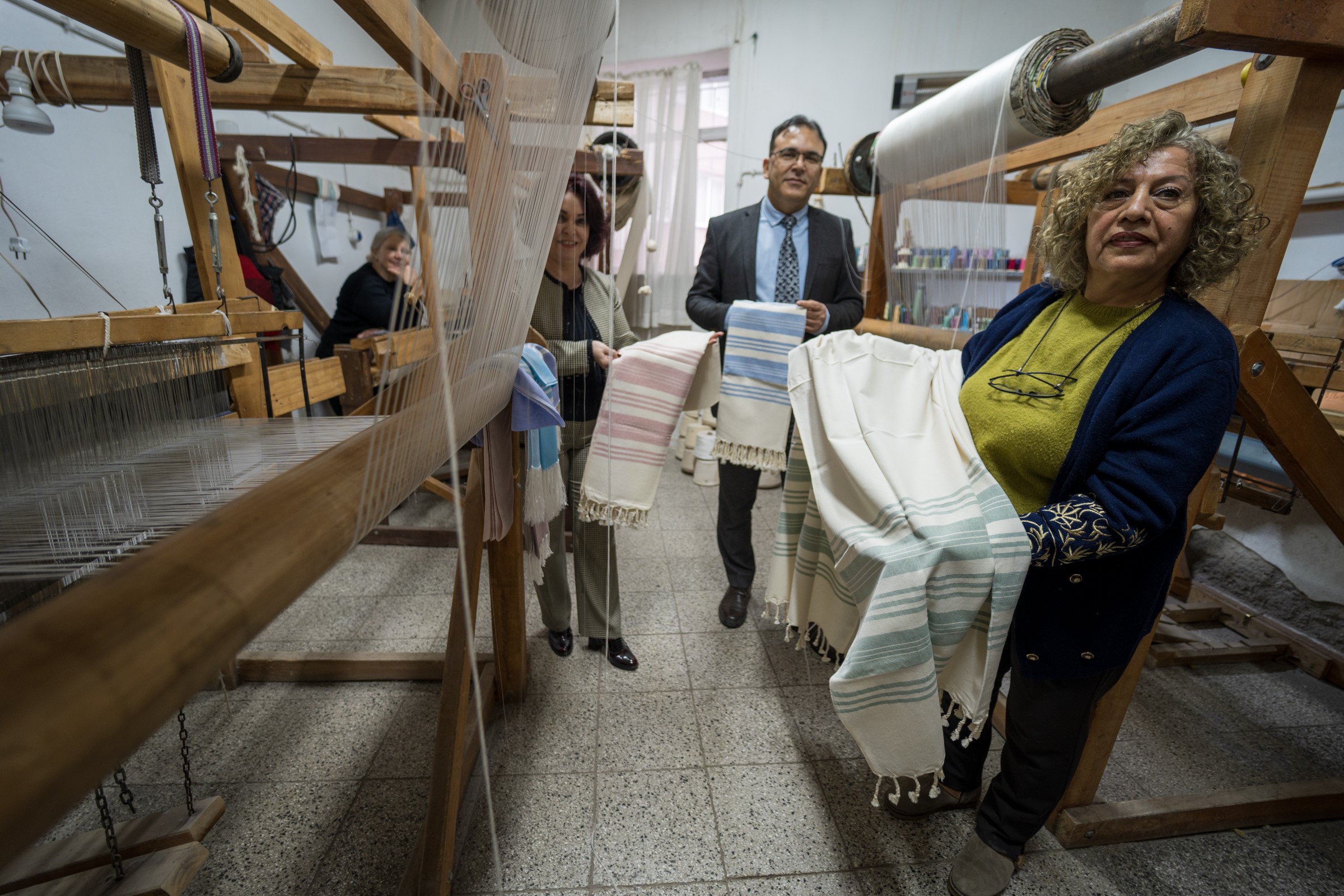 Dokuma tezgahında adeta terapi gördüğünü belirten dokumacı Ayşe Arslan "Burada dokumacıyım. 6-7 seneden beri dokuma yapıyorum. Hiç çalışmışlığım yok. İlk defa burada bir çalışma hayatıma oldu. Benim için de çok iyi oldu. Hem ev ev bütçeme katkıda bulunuyorum hem kafamı dağıtıyorum. Arkadaşlıklar da çok güzel. Burası bana çok iyi geldi" dedi.