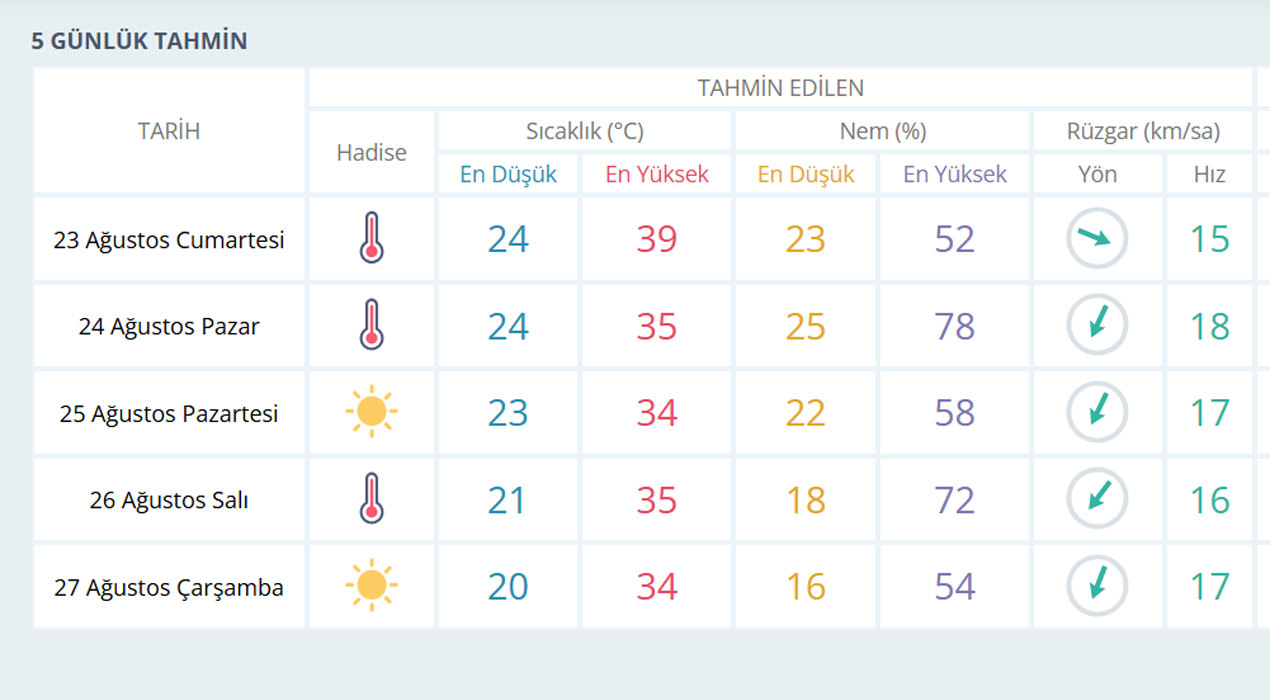 MANİSA İÇİN 5 GÜNLÜK HAVA TAHMİNİ