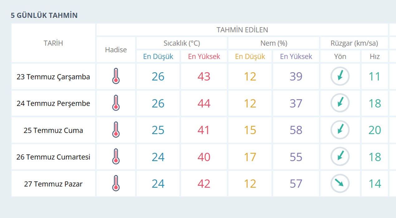 MANİSA İÇİN 5 GÜNLÜK HAVA TAHMİNİ