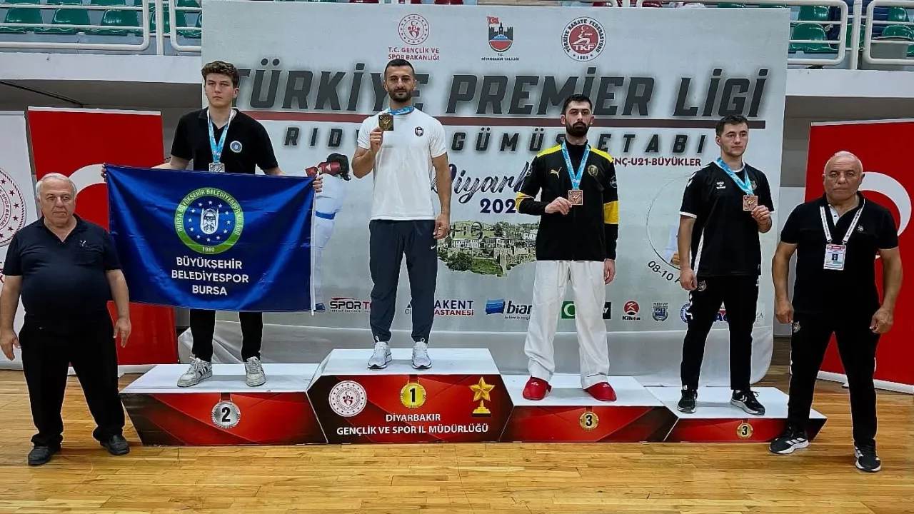 Diyarbakır’da 8-10 Ağustos 2025 tarihlerinde düzenlenen Türkiye Karate Premier Ligi Rıdvan Gümüş etabında Bursa Büyükşehir Belediyespor Kulübü sporcuları, 1 altın, 3 gümüş ve 3 bronz madalya ile toplam 7 madalya kazanarak büyük bir başarı elde etti.BURSA (İGFA) - Diyarbakır Seyrantepe Spor Salonu’nda gerçekleştirilen Türkiye Karate Premier Ligi Rıdvan Gümüş etabında, 54 ilden 1275 sporcu madalya için kıyasıya mücadele etti.