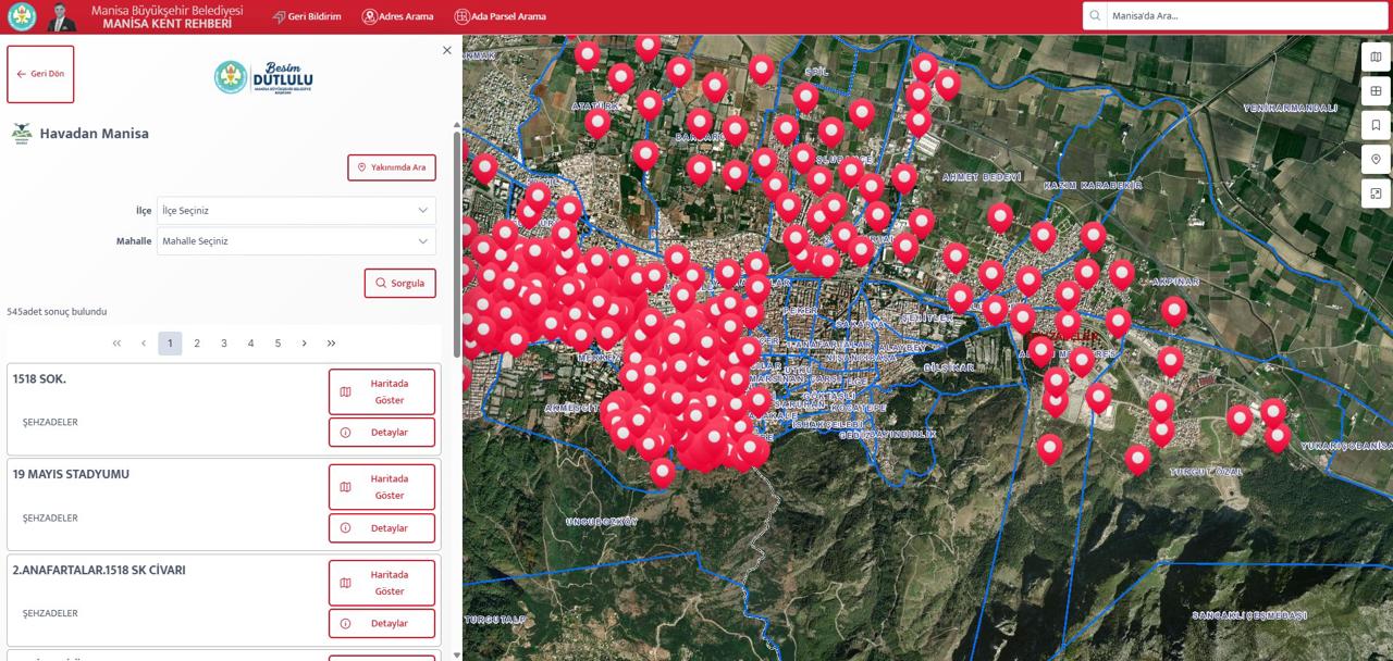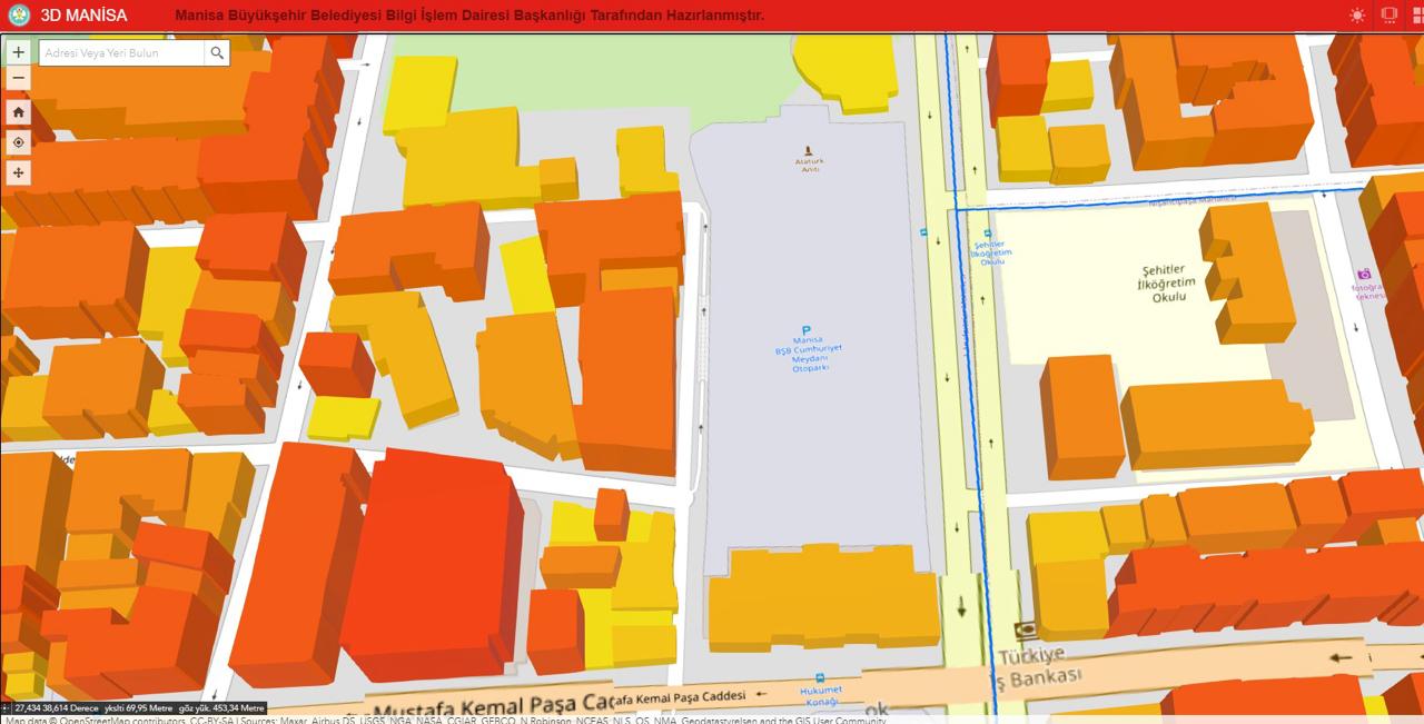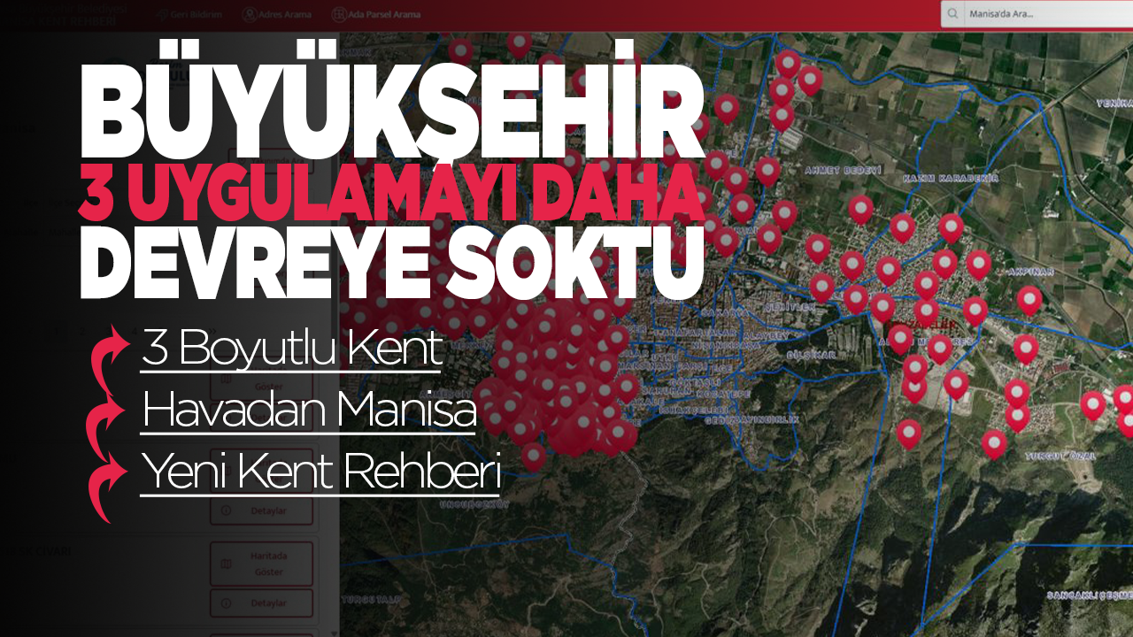 Diğer bir uygulama olan ‘3 Boyutlu Kent Rehberi’ projesinde ise 17 ilçede toplam 303 bin 509 adet yapı üç boyutlu olarak dijital ortama aktarıldı. Bu yapılar bina kat sayısı ve yükseklik bilgileriyle birlikte modellenerek Manisa Büyükşehir Belediyesi internet sayfasında vatandaşların kullanımına sunuldu. Bu uygulamadan daha çok şehir planlamacıları, akademisyenler ve yatırımcıların büyük veri kaynağı olarak yararlanması bekleniyor.