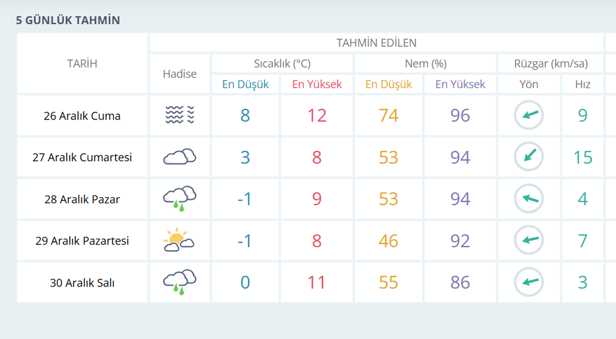 MANİSA İÇİN 5 GÜNLÜK HAVA TAHMİNİ